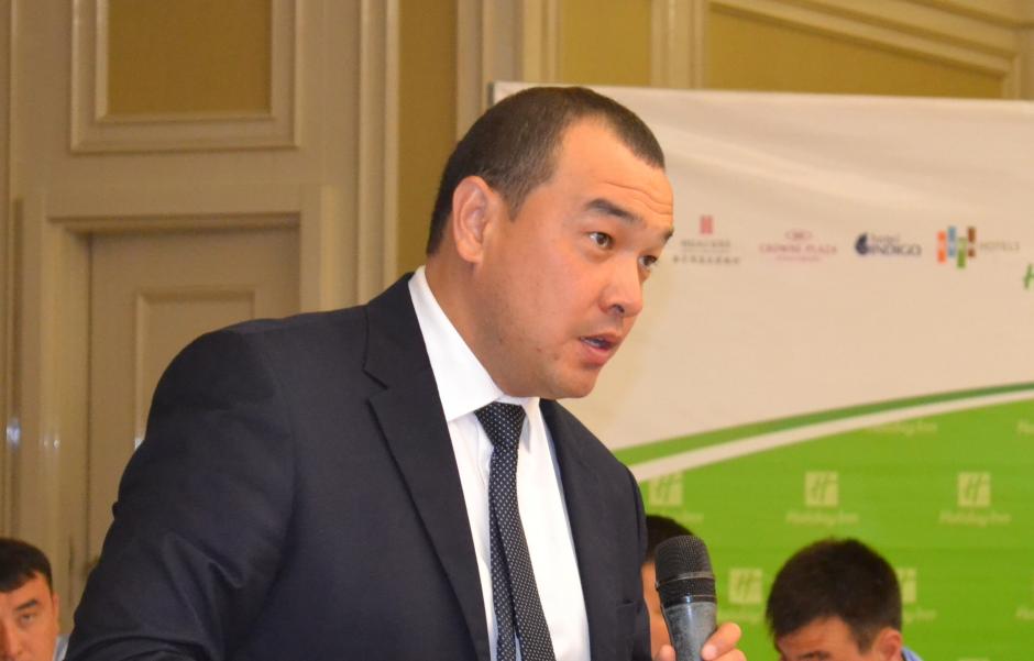 Zhangali Kenbayev, expert, the Head of the Educational Center on Combating Illegal Migration and Human Trafficking of the Karaganda Police Academy presenting on current situation on human trafficking issues in Kazakhstan, Aktau, 3 August 2017.