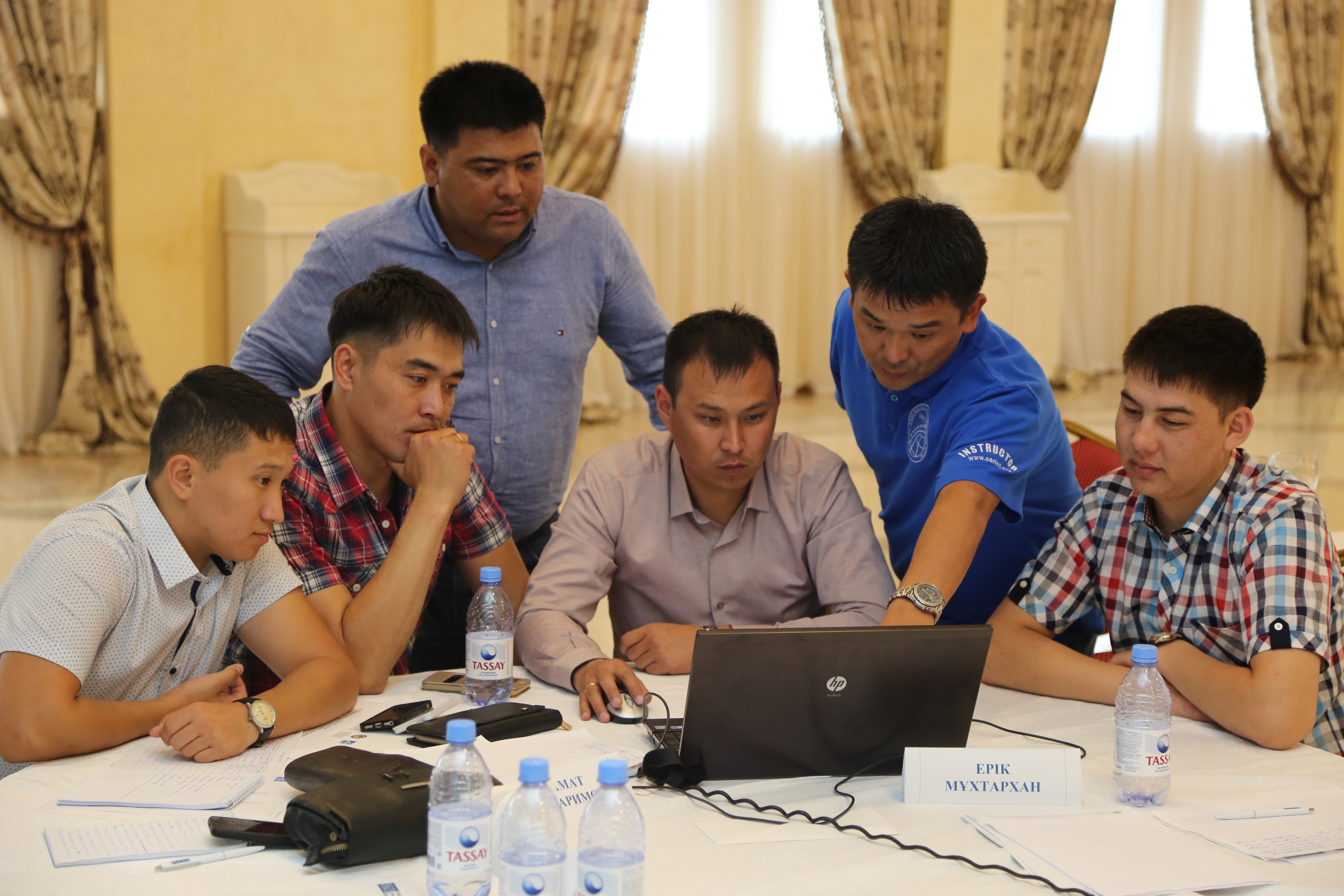An instructor from CARICC teaches the participants how to analyse information on criminal incidents and develop an actionable in-depth risk profile in Kostanai, 1 August 2017.