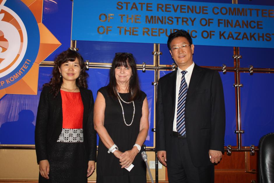 Representatives from Austria, China and Kazakhstan during the workshop on trade facilitation and border security, Astana, 24 August 2017.
