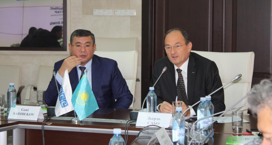 (r-l) Ambassador György Szabó, Head of the OSCE Programme Office in Astana and Gani Sadibekov, Vice-Minister of Energy of Kazakhstan at an OSCE-supported workshop on green building standards, Astana, 21 September 2017.