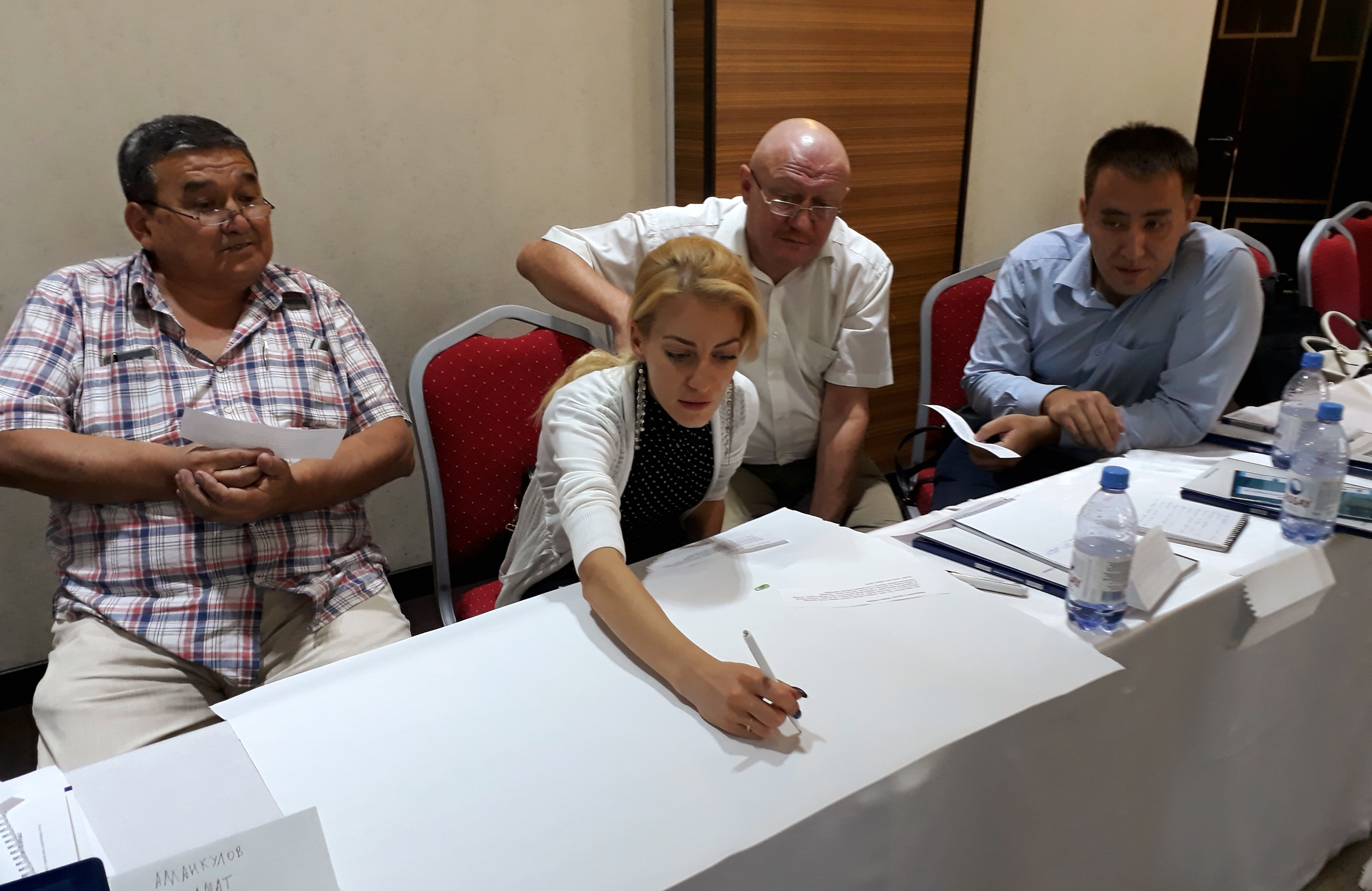 Participants engaged in group exercises to analyze text and better understand ways to use best practices in drafting and editing, Shymkent. 25 September 2017.