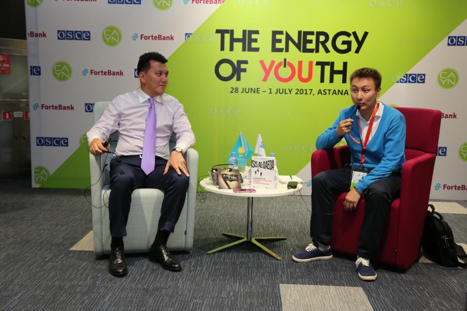 CAYN guest speaker Erlan Karin, CEO, Kazakhstan Radio and Television Corporation, during the presentation of the book “Between ISIL and Al-Qaeda: Central Asian militants in the Syrian war”, Astana, 28 June 2017.
