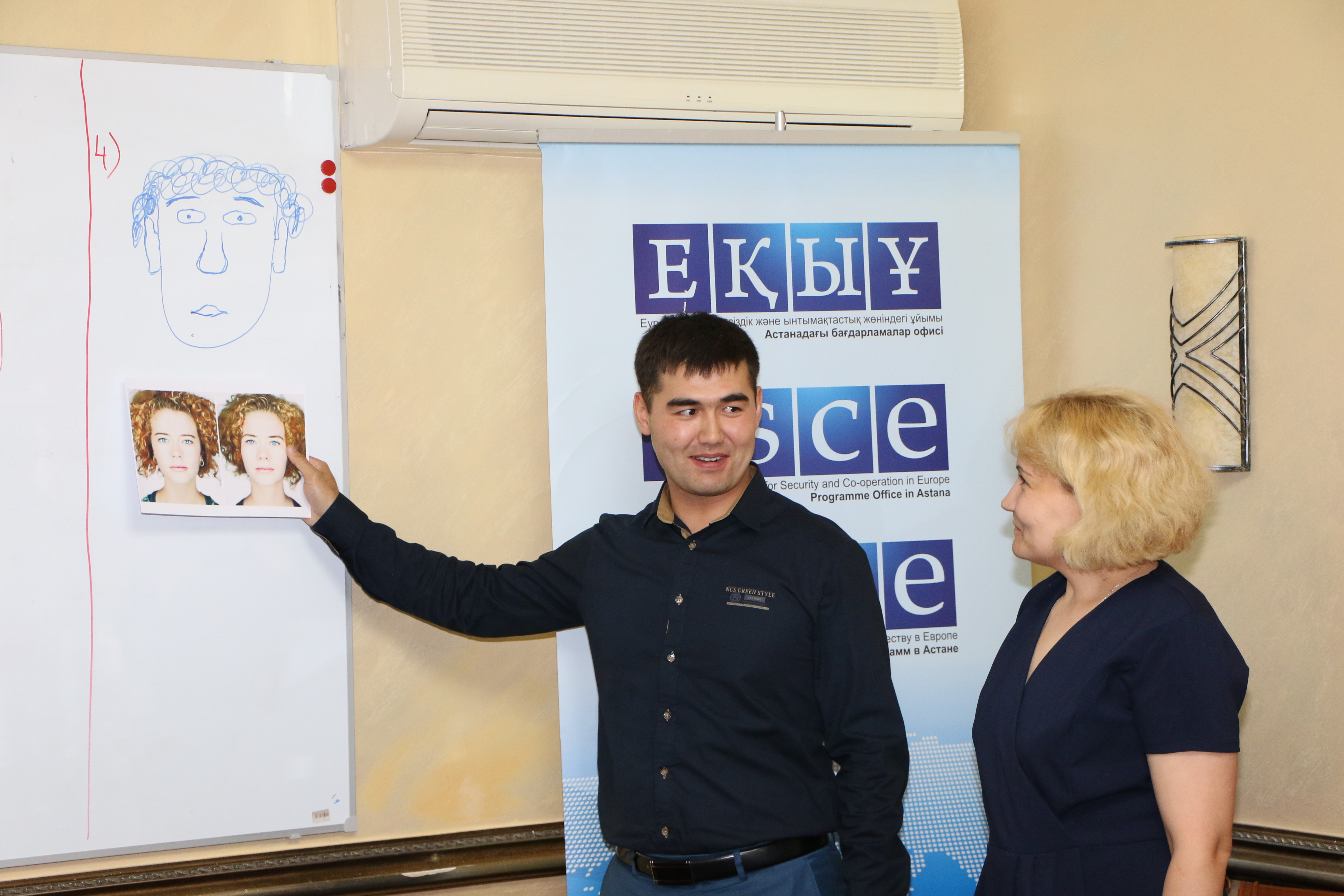A participant is honing facial features identification skills during a practical exercise of the training on risk profiling at border checkpoints, Aktobe, 29 June 2017.