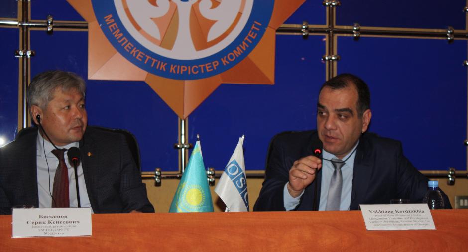 Vakhtang Kordzakhia, an-OSCE supported expert, sharing information on customs clearance procedures in Georgia, Astana, 8 November 2017.