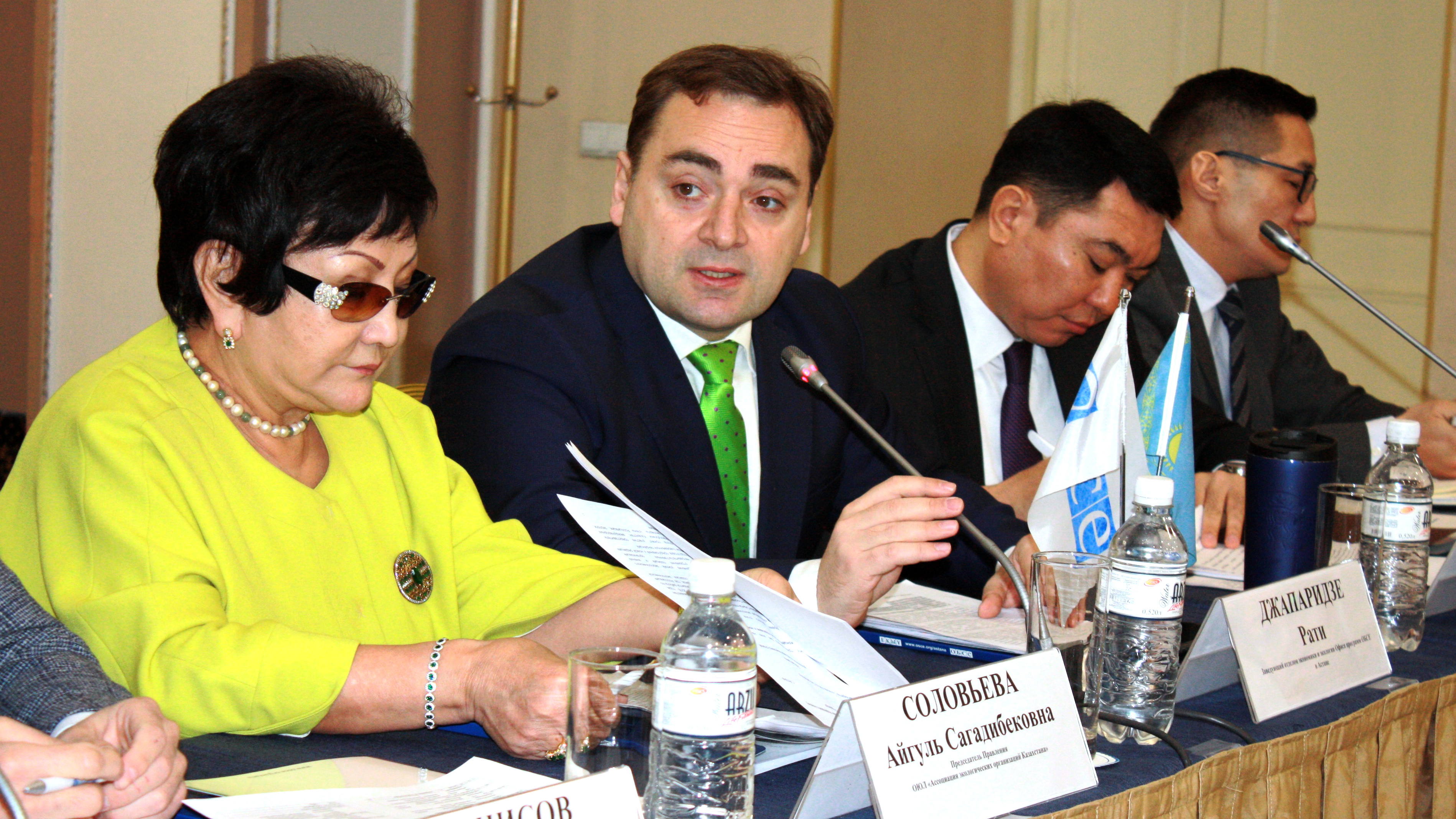 Rati Japaridze, Economic and Environmental Officer at the OSCE Programme Office in Astana, speaking at the roundtable discussion on revising Kazakhstan’s Environmental Code, Astana, 29 March 2018.