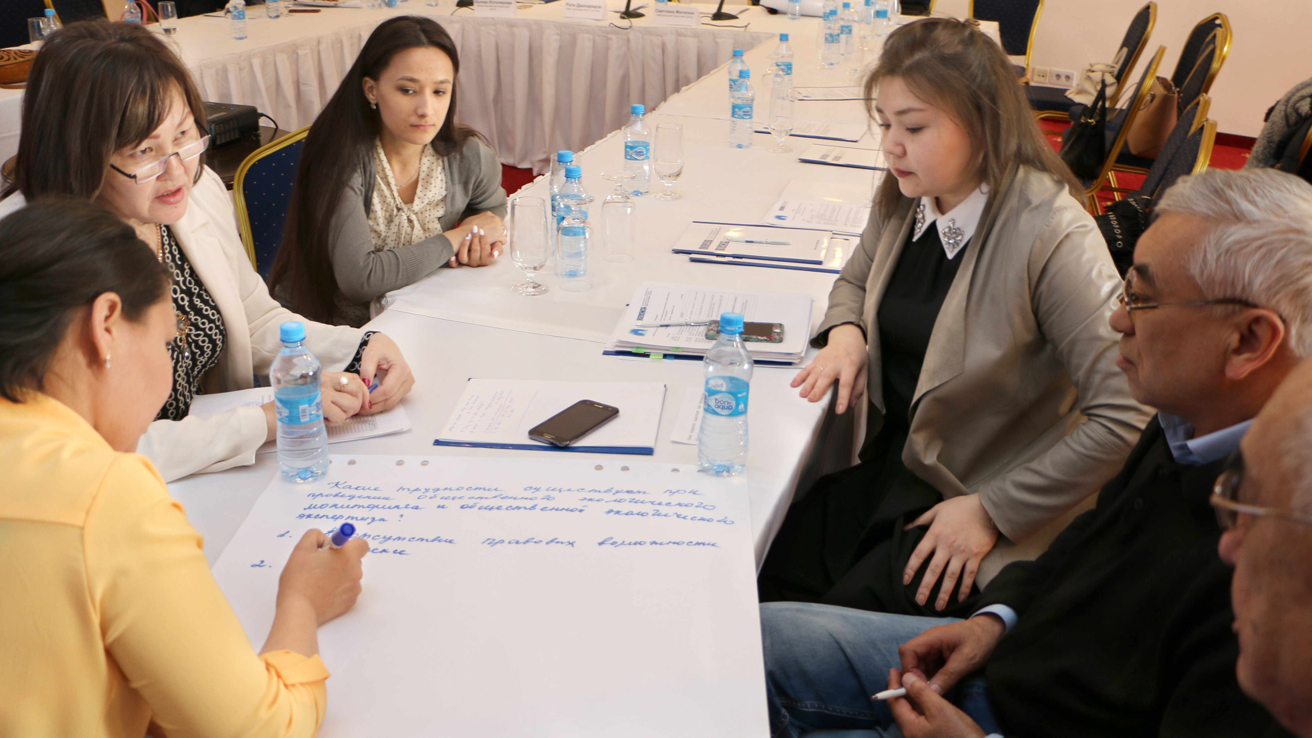 Seminar participants discuss existing challenges in conducting public environmental monitoring, Atyrau, 13 April 2018.