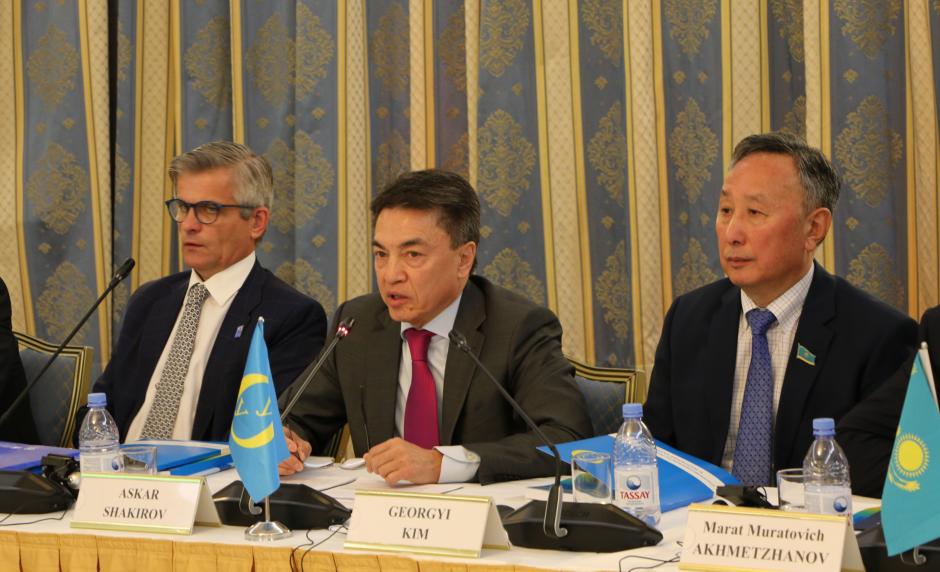 Kazakhstan’s Human Rights Ombudsman Askar Shakirov speaks at the presentation of his 2017 report, Astana, 22 May 2018.