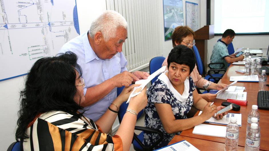 During the practical exercise the training participants estimating the state of water resources availability in the river basins of Kazakhstan in the low water years, Almaty, 5 July 2018.