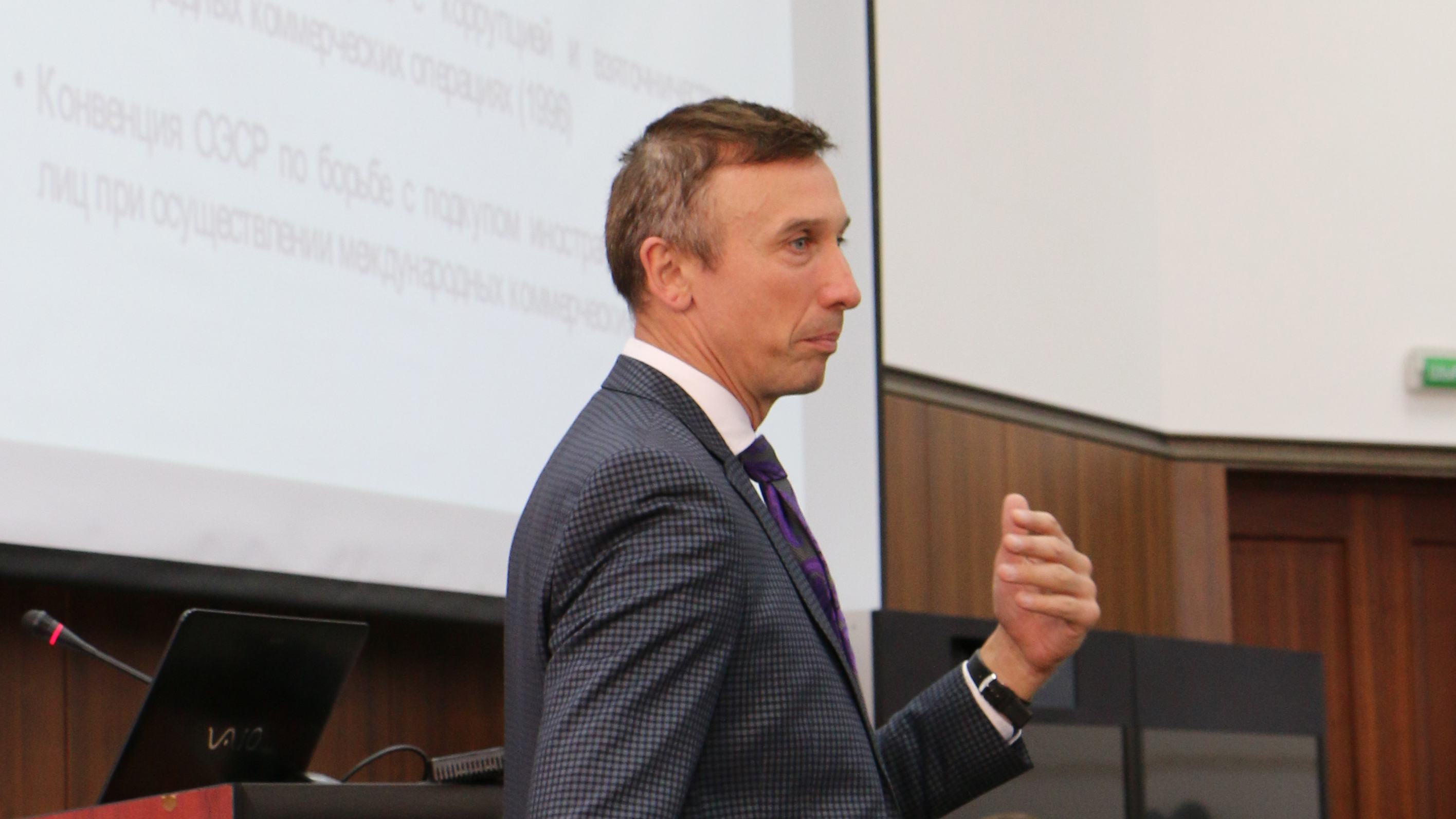 Raimundas Kalesnikas, an OSCE-supported expert on management of corruption risks introduces the topic to the audience, Astana, 14 September 2018.