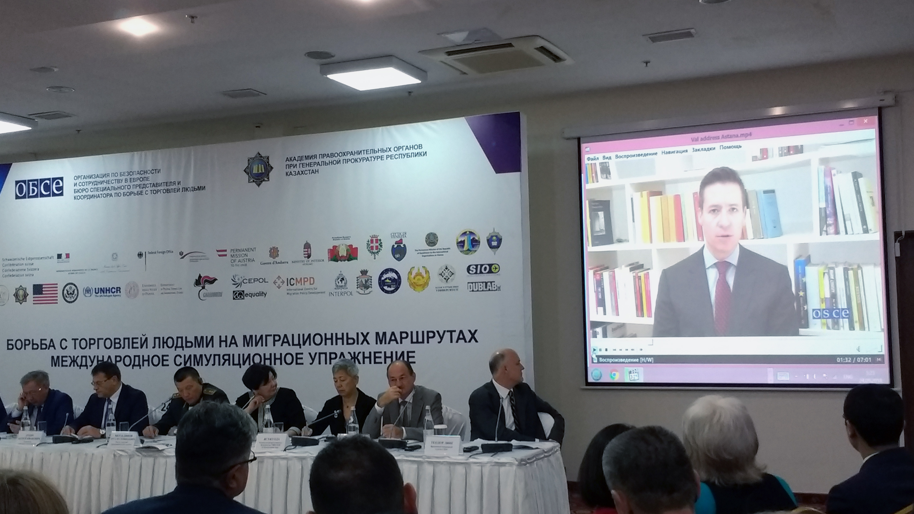 The OSCE Acting Co-ordinator for Combating Trafficking in Human Beings, Valiant Richey, addressing the high-level opening ceremony of an OSCE-organized week-long simulation exercise in Astana, 24 September 2018.