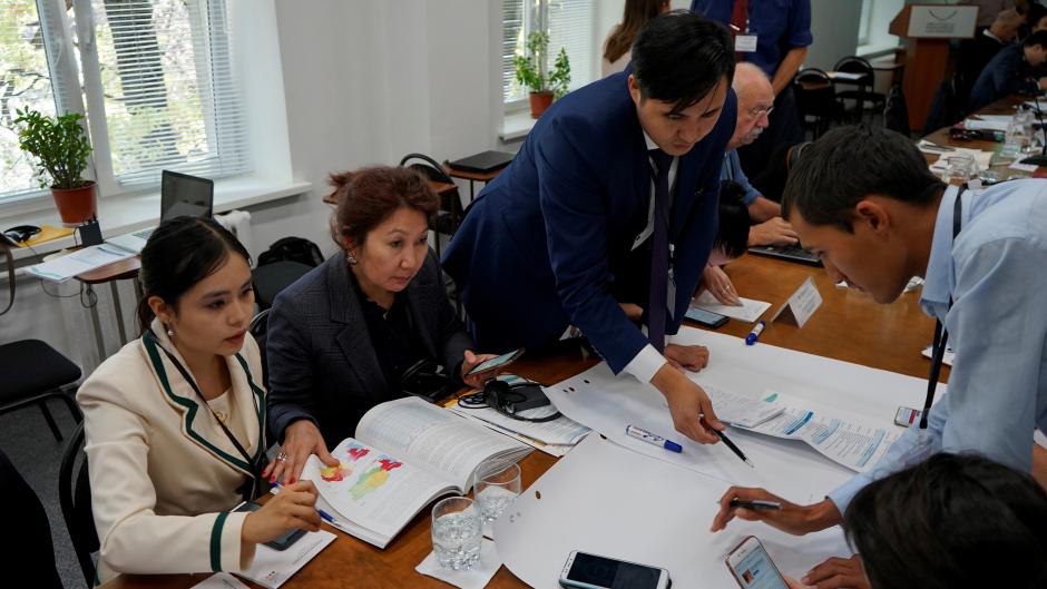 Participants of the training seminar worked in teams on climate change adaptation measures, Almaty, 26 September 2018.