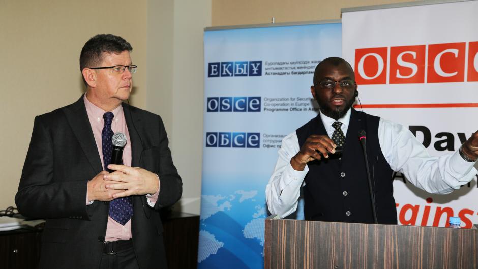 Experts Simon Cornwall (I) and Dr. Abdul Haqq Baker (II) are presenting programmes for rehabilitation of violent extremist prisoners based on case studies, Astana, 4 December 2018.