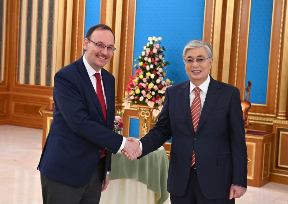 Head of Mission Dr. Frobarth with the President of the Republic of Kazakhstan at the meeting of representatives of the diplomatic corps in Kazakhstan.
