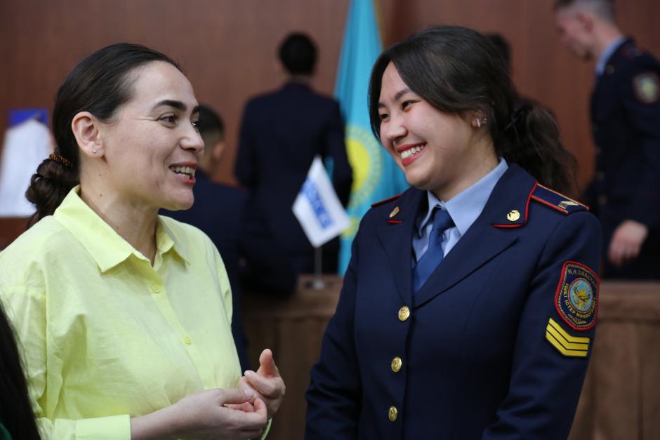 Warm farewells between an actor and a participant of the first regional Central Asian simulation-based training on Combating Trafficking in Human Beings (CTHB), Kosshy, 26-30 June 2023.