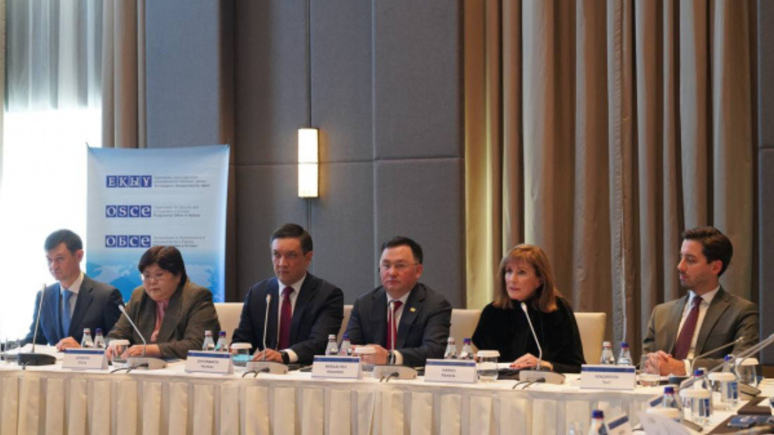 High-level officials opening the international roundtable “Improving the Effectiveness of the Justice System in Kazakhstan: Achievements and Initiatives” on February 28, 2025, in Astana, Kazakhstan.