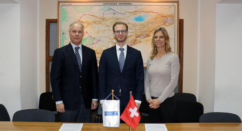 BISHKEK, 14 December 2017 - An agreement in which Switzerland commits to allocate CHF 430,000 (approximately EUR 370,000) in support of the OSCE Academy in Bishkek over the next three years was signed by the Swiss Ambassador to Kyrgyzstan, Véronique Hulmann and the Head of the OSCE Programme Office in Bishkek, Pierre von Arx on 14 December 2017 in Bishkek. The grant will be used to strengthen the Academy’s research capacities.