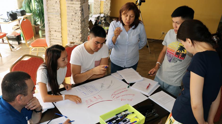 Bishkek Programme Office staff brainstorm gender equality situation in Kyrgyzstan at a specially organized Gender School, Issyk-Kul, 21 August 2018.