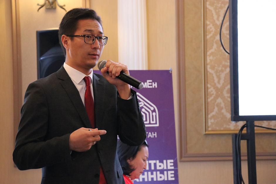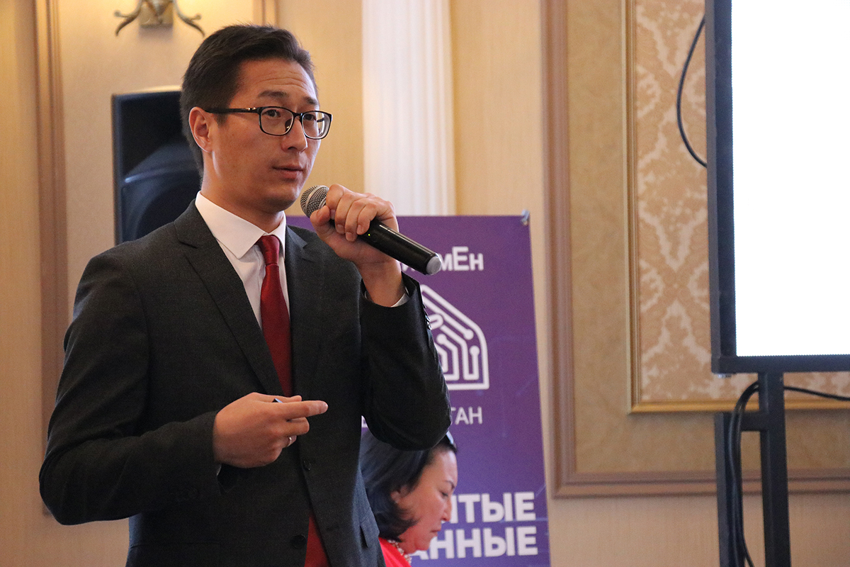 Dastan Dogoev, Chairperson of the State Committee on Information Technologies and Communications of the Kyrgyz Republic, delivering a presentation about Kyrgyzstan’s digital transformation strategy at the Civic Forum “Digital Citizenship: I am digital, be digital!” supported by the OSCE Programme Office in Bishkek, Bishkek, 17 September 2019.
