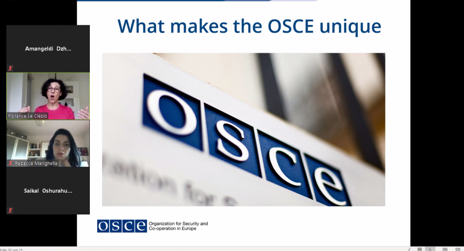 More than 20 young professionals and university students took part in the online Model OSCE simulation workshop from 6 to 9 October. Participants included young people from Central Asian countries: Afghanistan, Kazakhstan, Kyrgyzstan, Tajikistan, Uzbekistan, as well as students from Austria, Croatia, Russia and Italy.