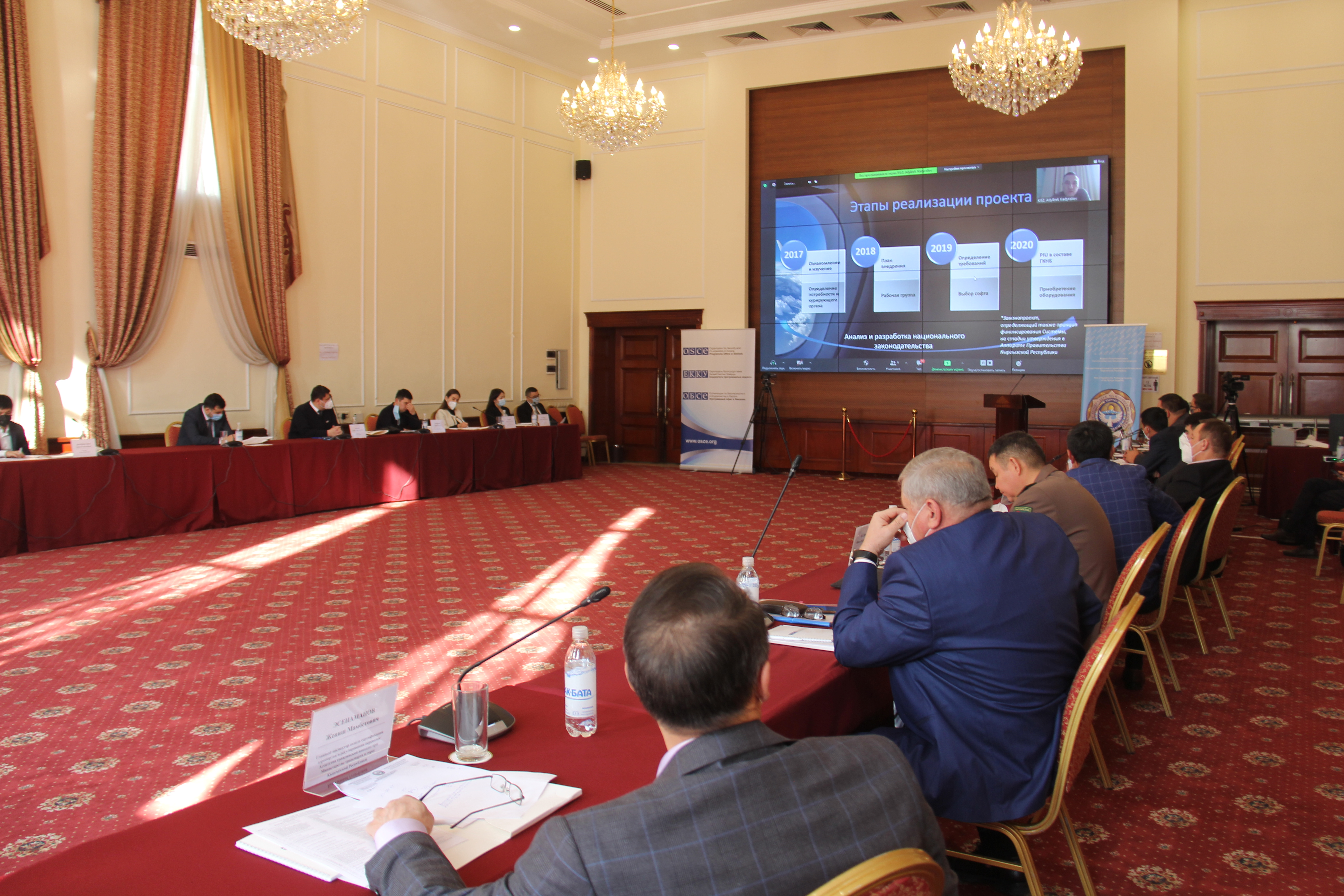 Participants of the round table on passenger data exchange discuss the implementation of the Advance Passenger Information (API) – Passenger Name Record (PNR) system in Kyrgyzstan, Bishkek, 4 December 2020. (OSCE)