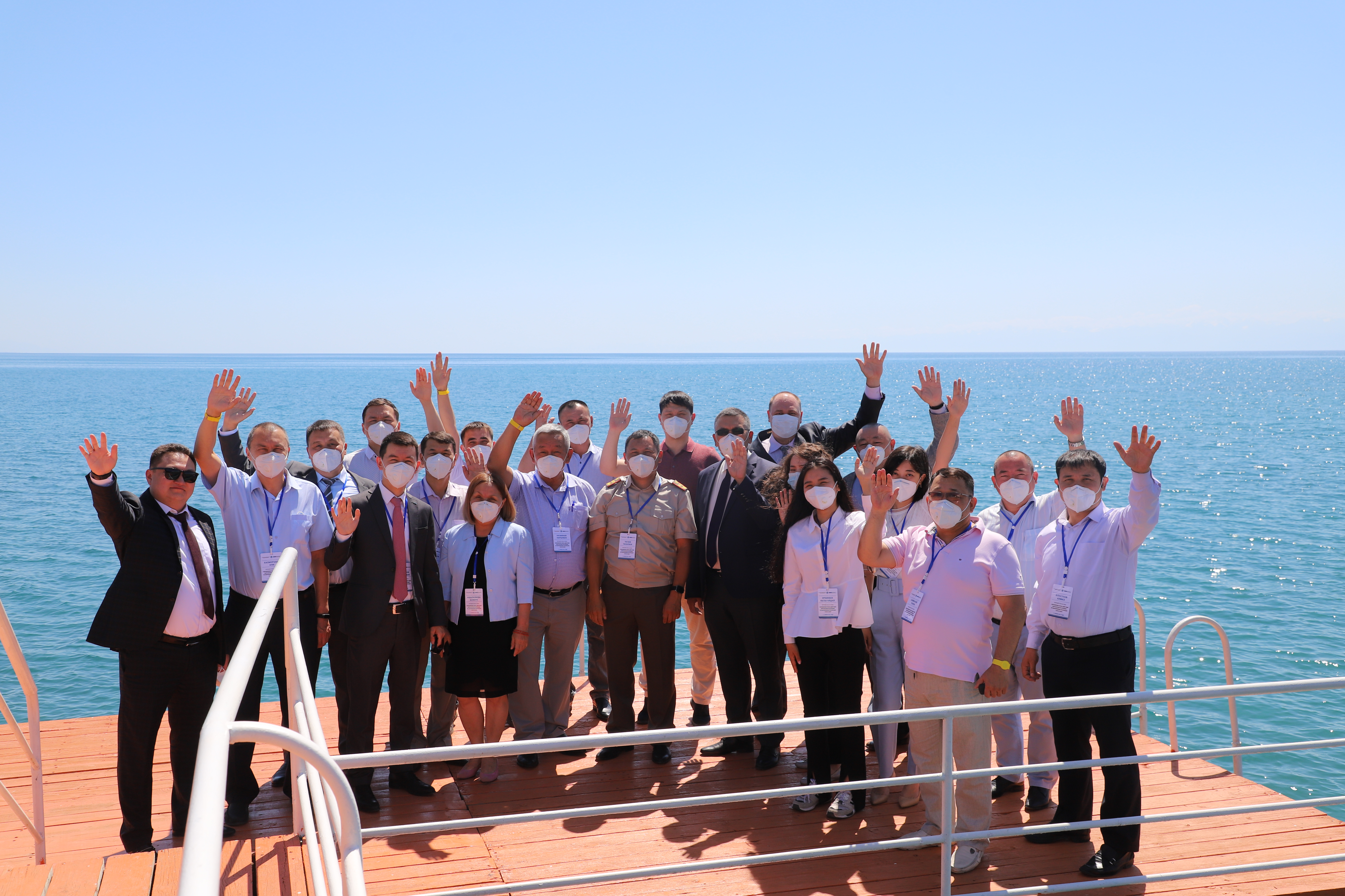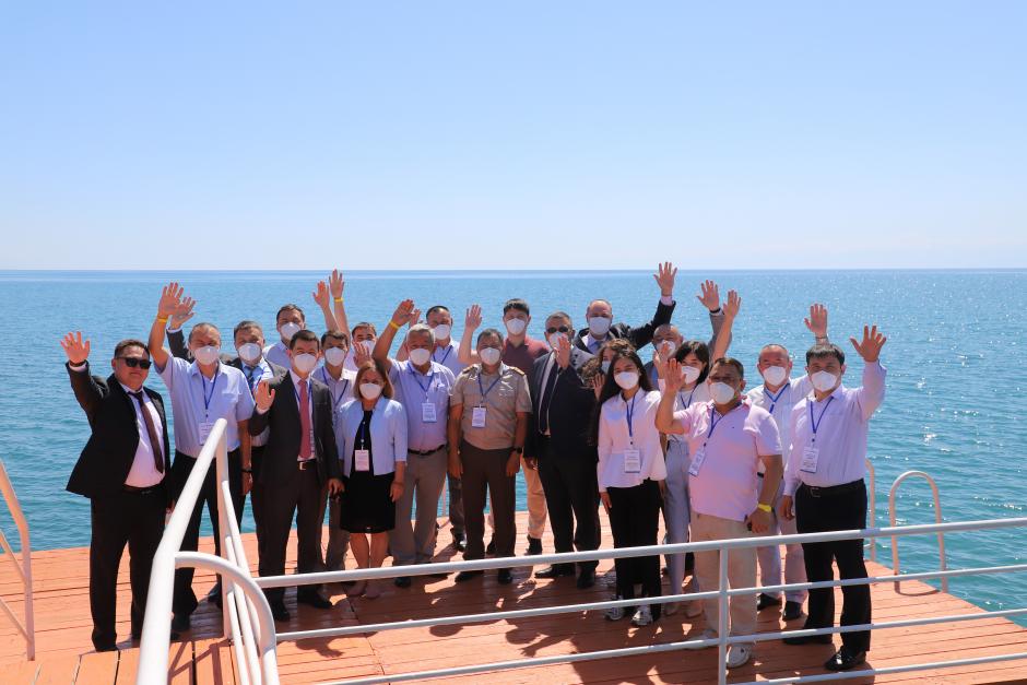 Participants of the roundtable discussion on updating Kyrgyzstan's National Action Plan on the implementation of the UN Security Council Resolution 1540 on effective measures against the proliferation of weapons of mass destruction, Issyk-Kul, 1 July 2021.