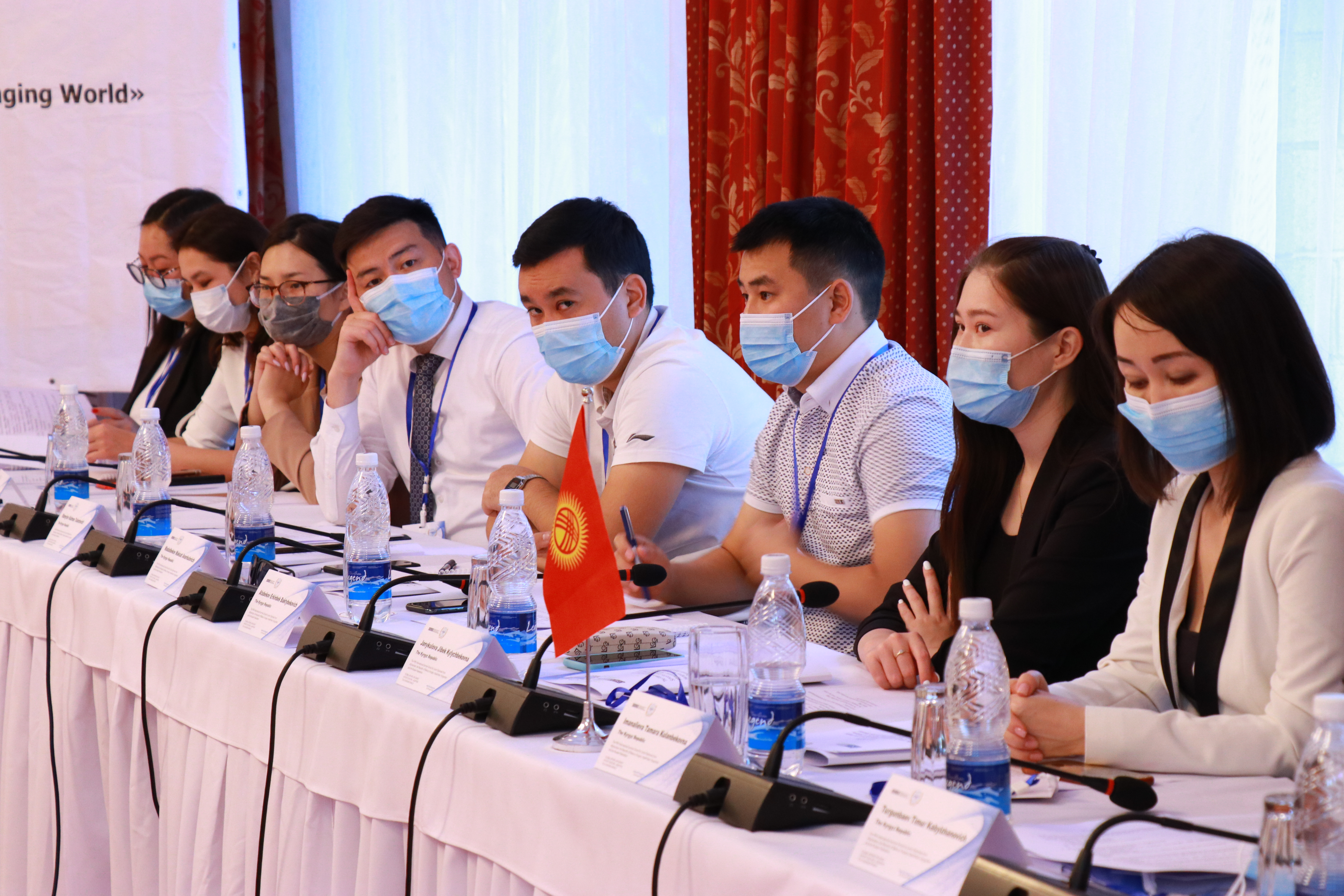 Participants of the Fifth International Summer School for Junior Diplomats having a session on Diplomacy in post-COVID-19 era, the Issyk-Kul province, Kyrgyzstan, 23 August 2021.