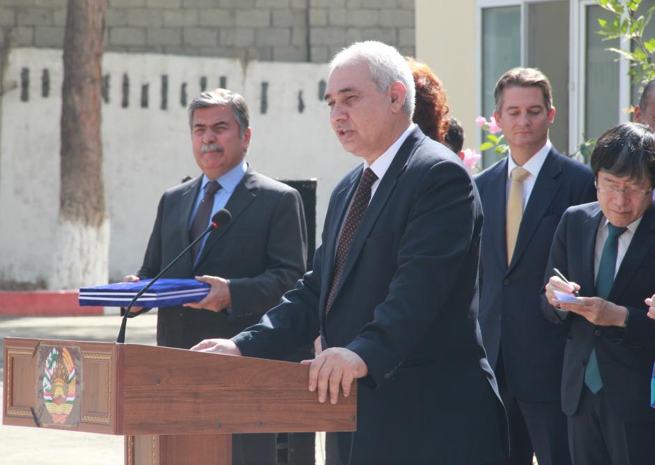 General Fayzullo Sadat from the Afghan Embassy in Dushanbe expressing his appreciation to the OSCE and Tajik Border Troops for continuous support and capacity building trainings for the Afghan Border Police staff, Gissar Training Centre, 15 September 2017.