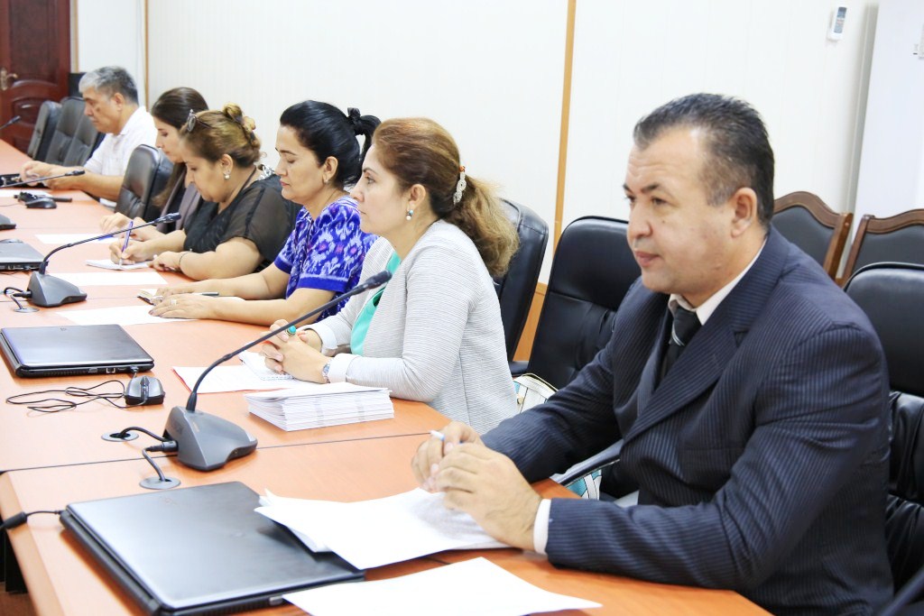 The sub-working group during a meeting on gender mainstreaming, Dushanbe, 25 September 2017.