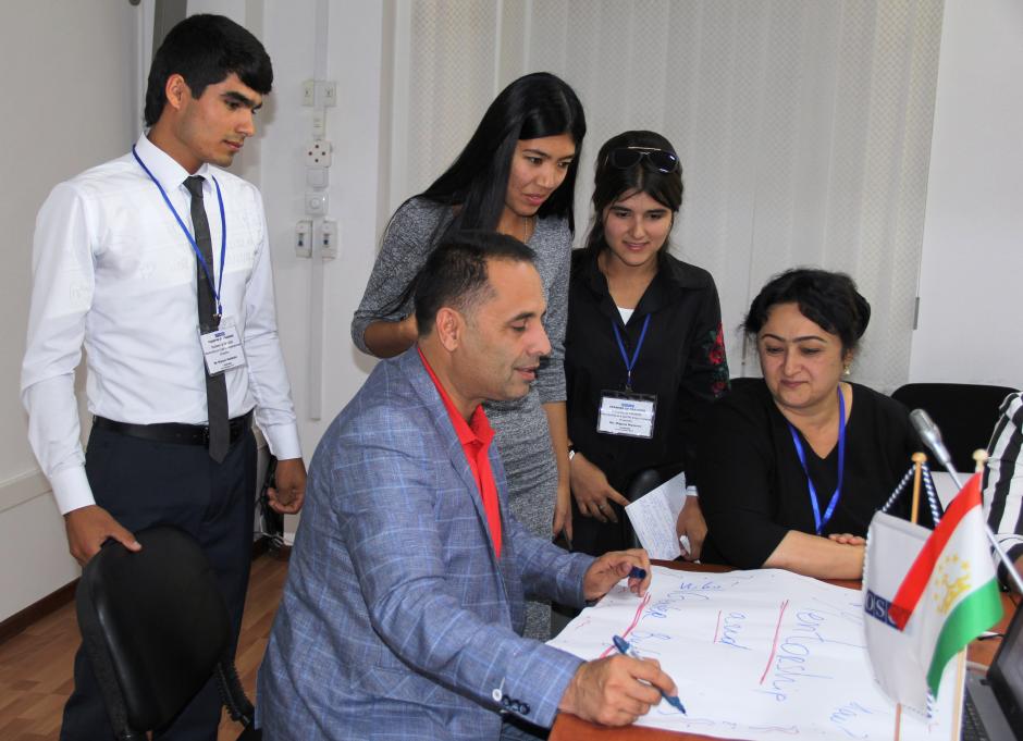 Participants during a two-day train-the-trainer course on mentoring for political parties, Dushanbe, 12 October 2017.