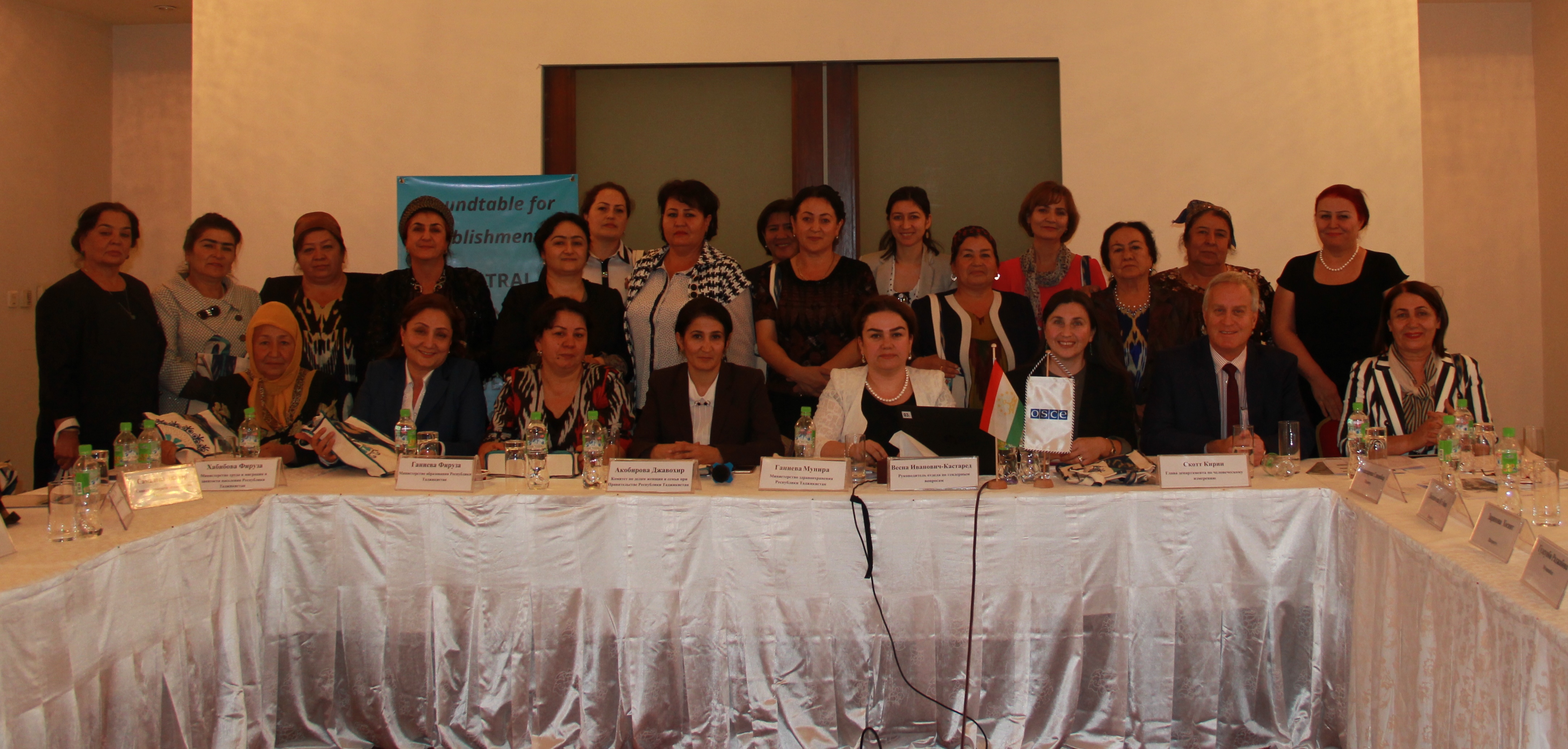 Participants of a one-day roundtable discussion on creating a central co-ordination body on gender issues, Dushanbe, 31 October 2017.