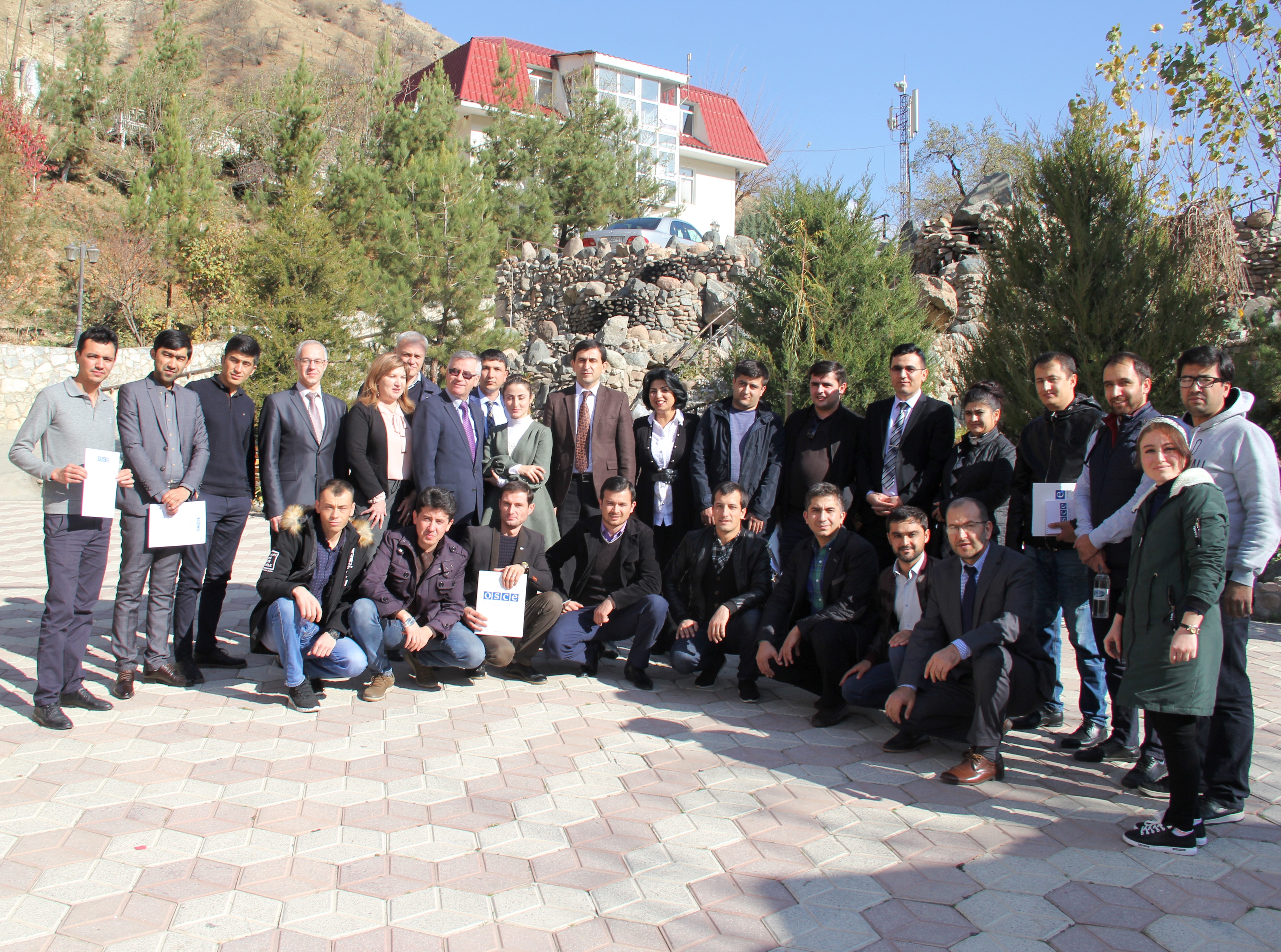 Participants of a four-day workshop on the role of the media in covering violent extremism and radicalization leading to terrorism posing for a group photo, Dushanbe, 17 November 2017.