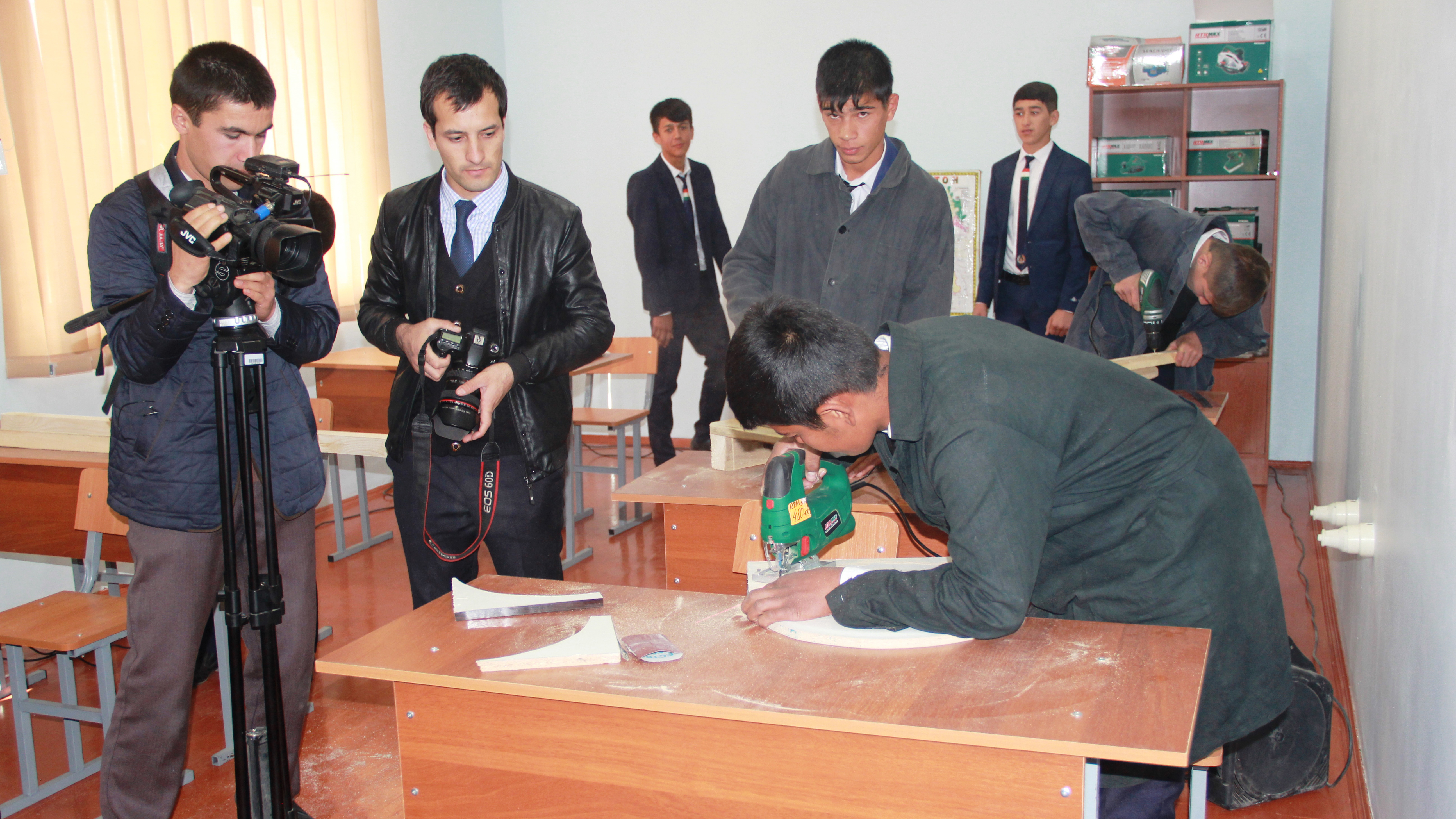 Schoolboys engaged in carpentry work, Nurek city, 22 November 2017.