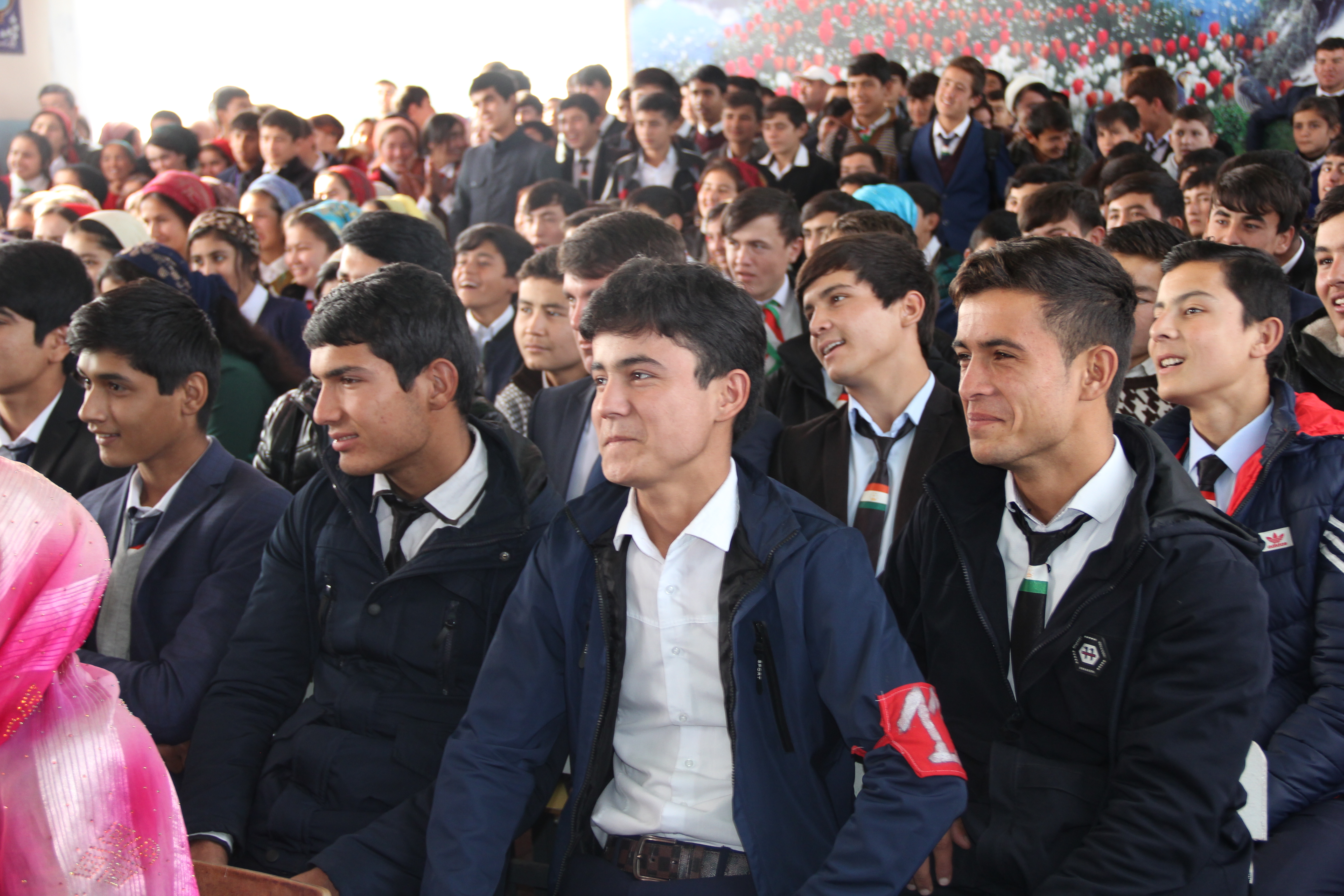 Schoolchildren of the Secondary School No. 10 in the Khuroson district of the Ayni Jamoat enjoy the performance, Khuroson District, Ayni Jamoat of Kurgan-Tyube, Tajikistan, 27 November 2017.