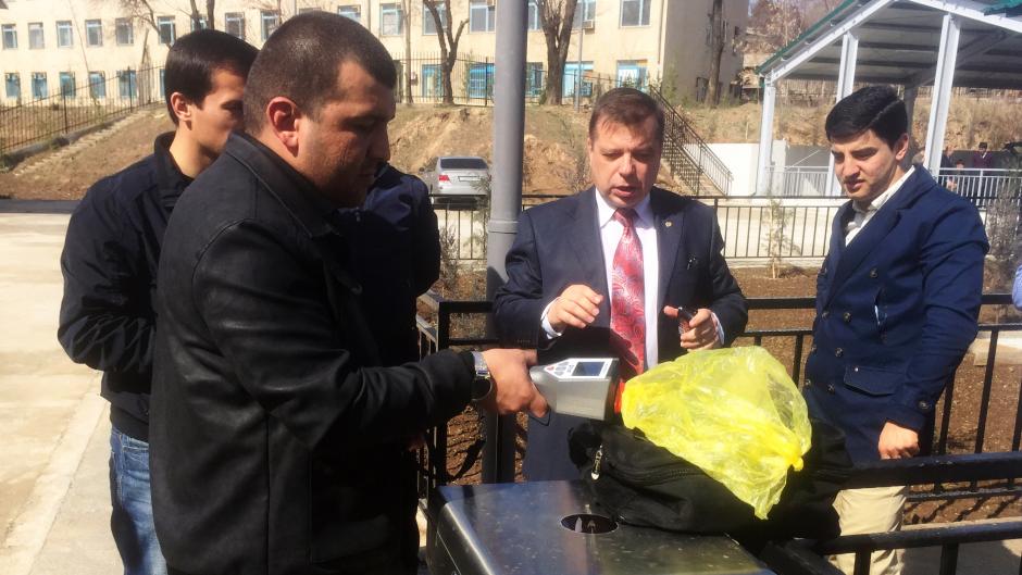 Tajik customs officers check the luggage for radiation during a training course on the detection of chemical, biological, radiological and nuclear materials at border checkpoints, Dushanbe, 28 February 2018.