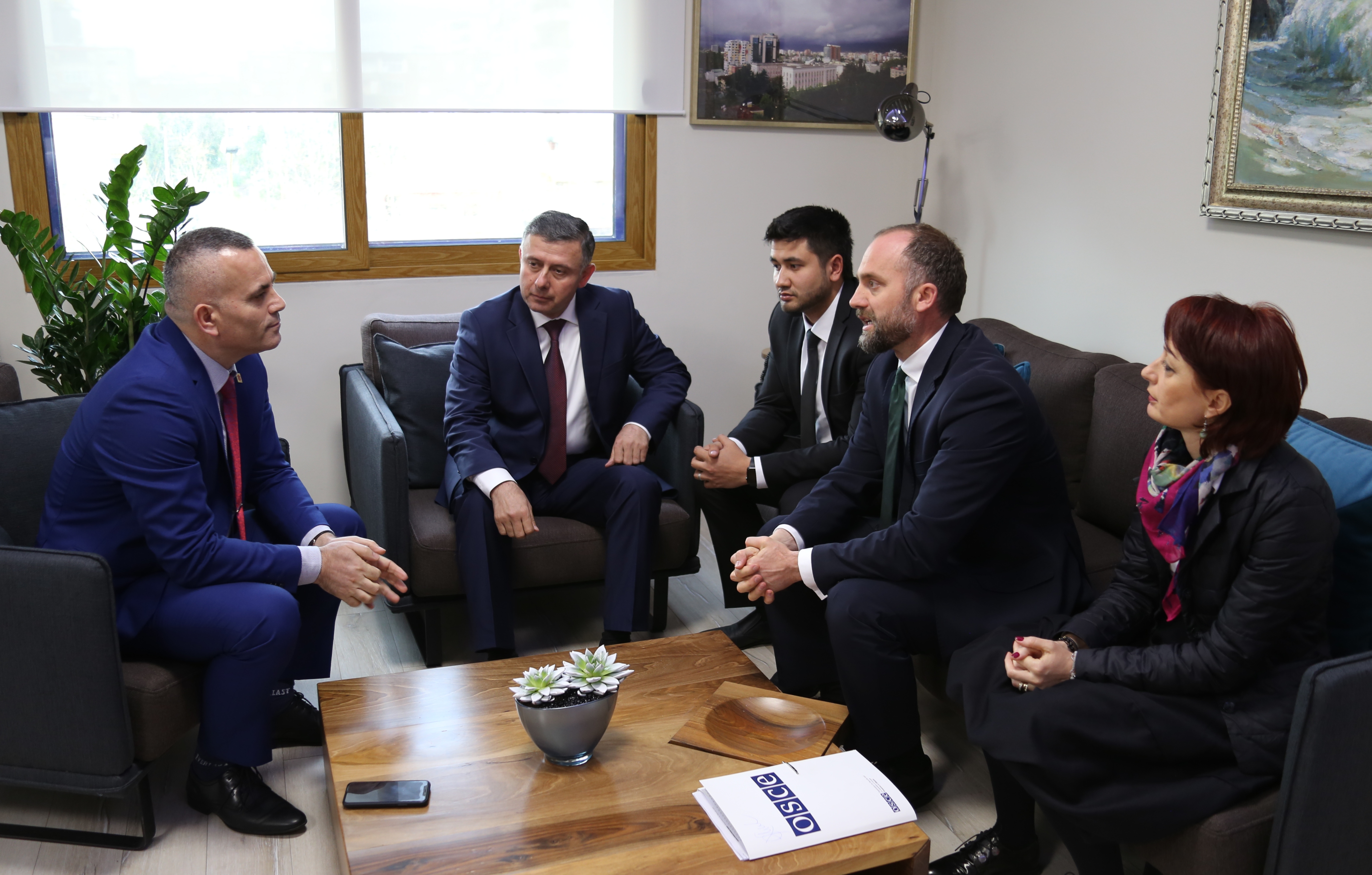 Ardi Veliu (l-r), General Director of the Albanian State Police, meeting with Colonel-General Rajabali Rahmonali, Tirana, 26 March 2018.