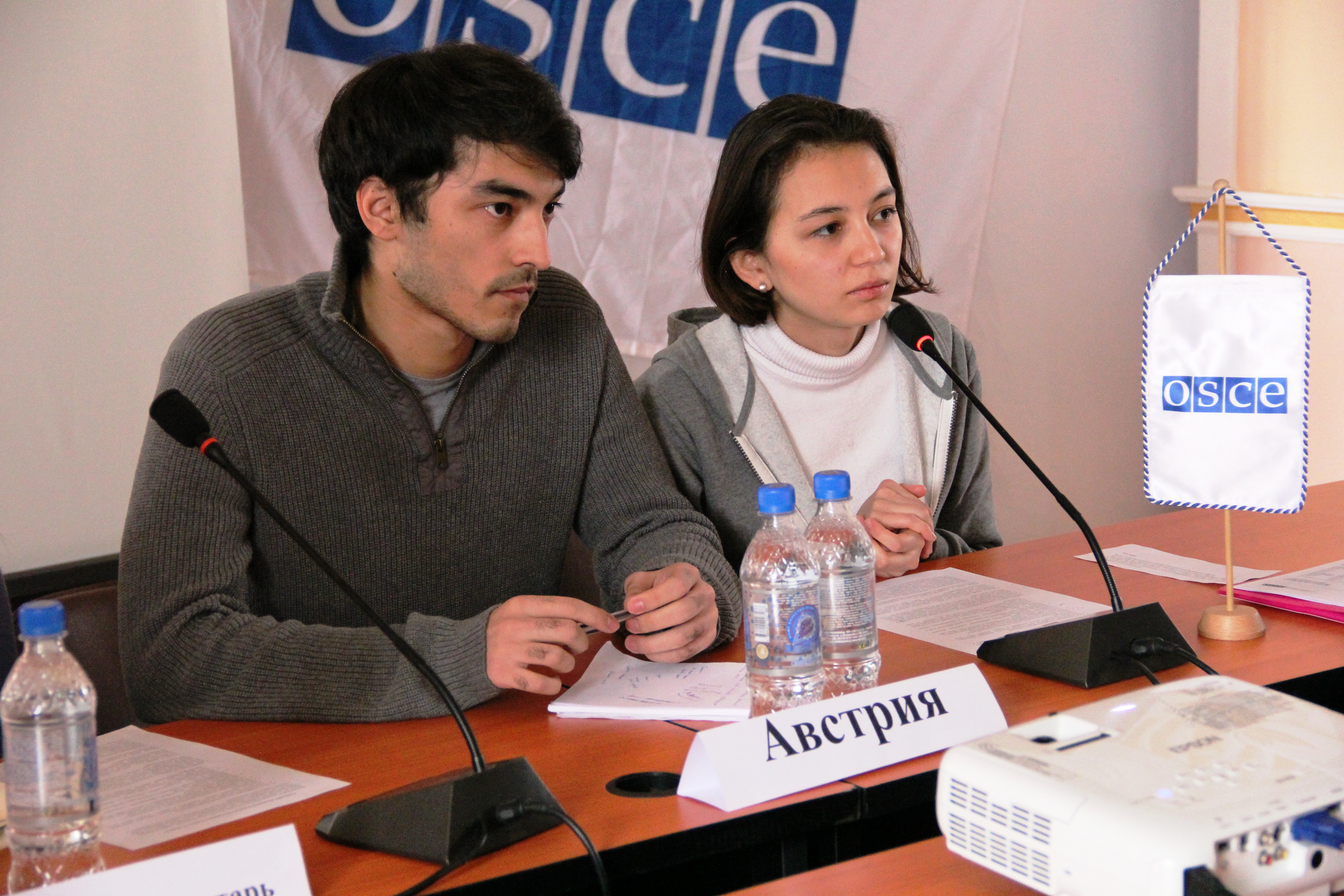Participants of the OSCE Youth Winter School representing Austria during the OSCE Permanent Council simulation exercise, Khoja Obigarm, 3 February 2018.