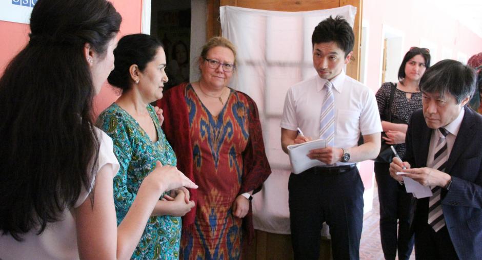 During the two-day visit, the Japanese delegation, accompanied by H.E. Hajime Kitaoka, Ambassador of Japan to the Republic of Tajikistan and Ambassador Tuula Yrjölä, Head of the OSCE Programme Office, visited the OSCE-supported Women’s Resource Centre (WRC) in Khuroson, Khatlon region. The Japanese Delegation learned about the hands-on support it provides to victims of domestic violence. The 18 WRCs in Tajikistan constitute the largest civil society network in the country promoting gender equality and empowering women and girls to claim their rights and access state services and institutions.