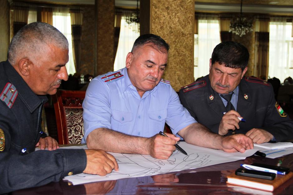 Deputy heads of the Interior Ministry of Tajikistan from Khatlon region during a two-day training course on best practices in responding to cases of domestic violence, Bokhtar, 10 April 2019.