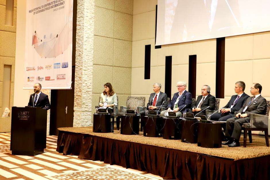 Fejzo Numanaj, Acting Head of the OSCE Programme Office in Dushanbe delivering an opening speech at the international conference dedicated to World Press Freedom Day, Dushanbe, 3 May 2019.
