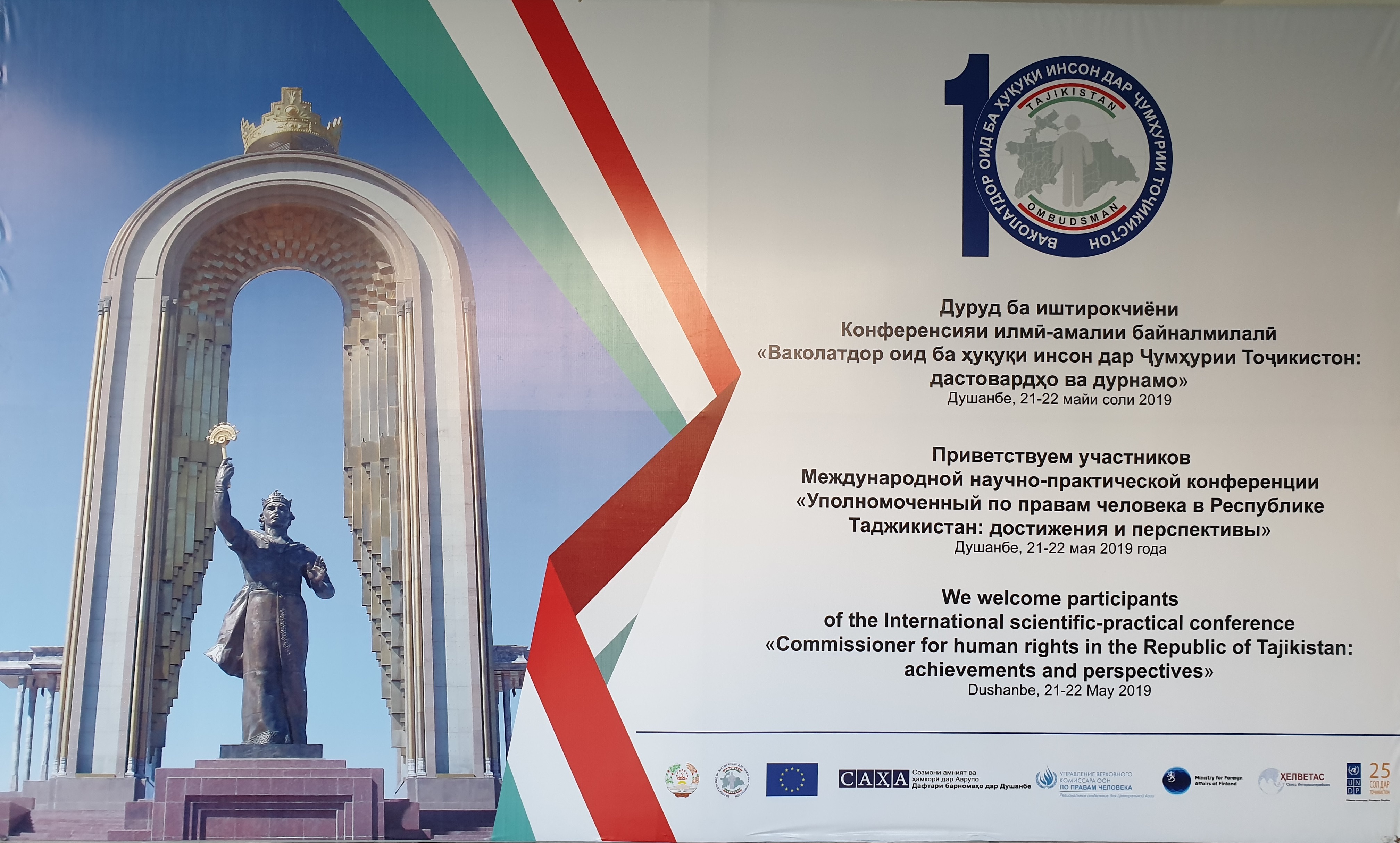 Banner of the conference marking tenth anniversary of the Ombudsperson Office in Tajikistan, Dushanbe, 22 May 2019.