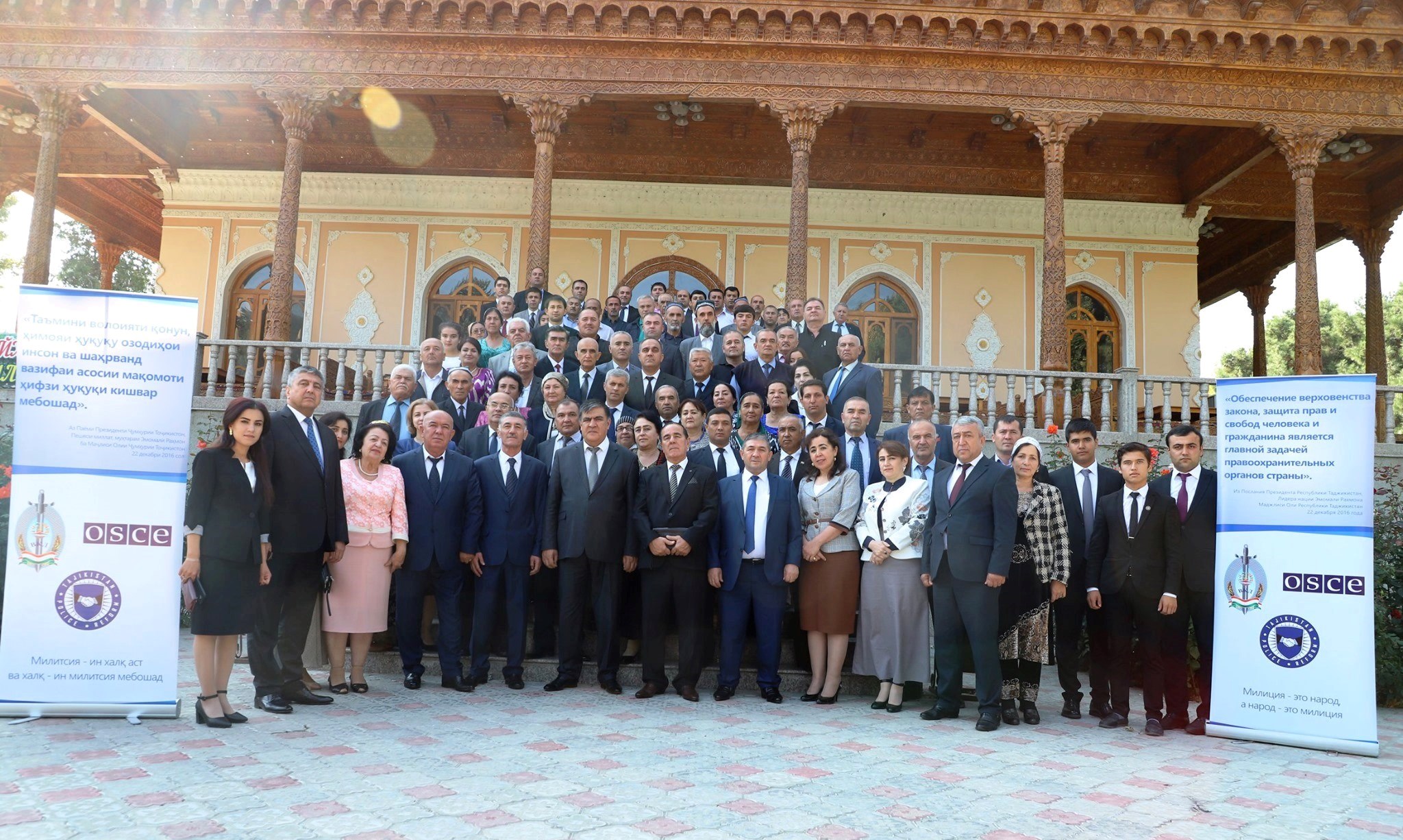 Participants of the roundtable discussion on community policing as a joint fight against crime, Guliston, Sughd region, 4 October 2019.