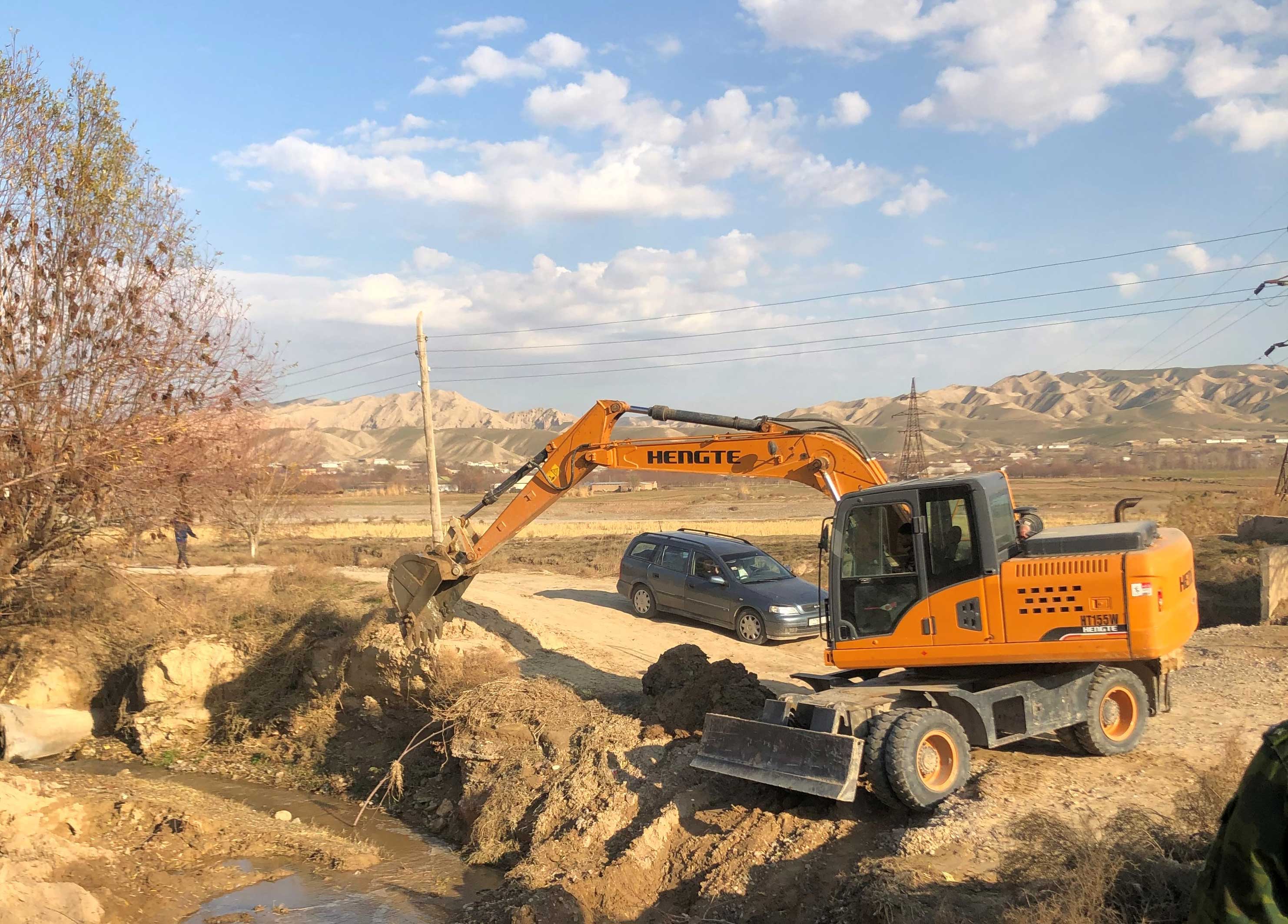 Clearing soil and other debris from flow channel, Shahritus district, 18 December 2019.