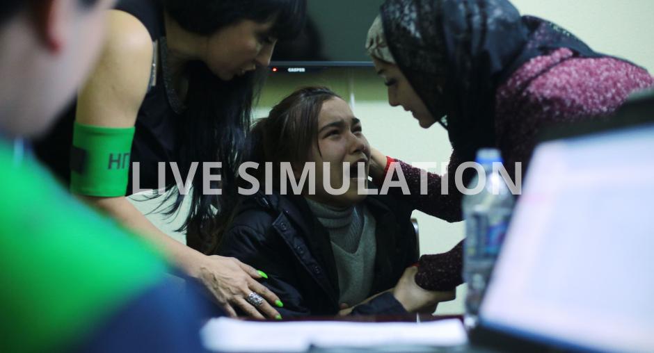 Actors simulating cases of human trafficking for labour and sexual exploitation during a four-day national simulation-based training on combating trafficking in persons, Safed-Dara, Tajikistan, 28 October 2021. (OSCE/Didor Sadulloev) Photo details