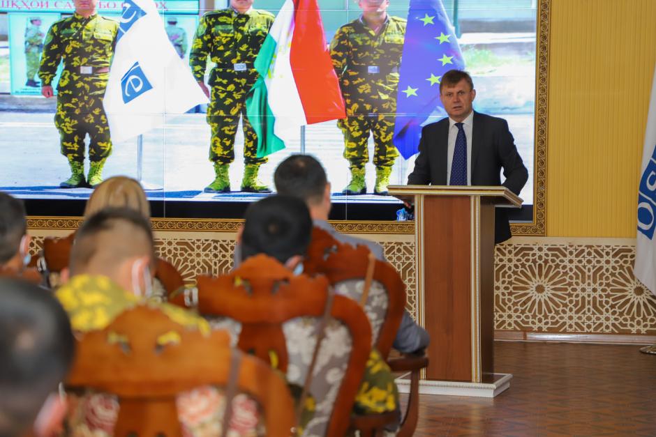 Ambassador Valeriu Chiveri, Head of the OSCE Programme Office in Dushanbe while addressing the participants of the training, Khorog, 1 June 2021.