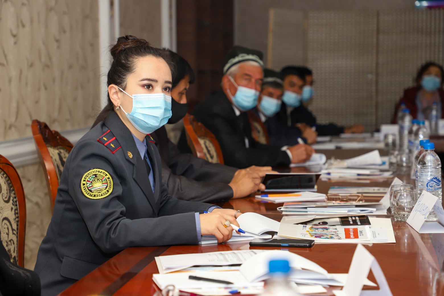 Female police officer of Tajikistan’s Interior Ministry during a three-day train-the-trainer course on «Combatting domestic violence and mainstreaming gender into the work of Public Councils», Khujand, 21 October 2021.