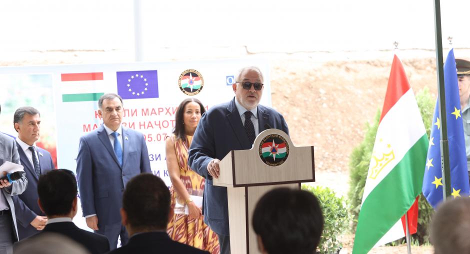“The finalisation of the I phase of the EU-funded project “Stabilization of Tajikistan’s southern borders with Afghanistan” -marks an important a milestone in the trilateral cooperation between the European Union, the OSCE programme office and the Committee for Emergency Situations and Civil Defence (CoESCD). Primarily by substantively strengthening, the professional capabilities of Tajikistan’s Border troops and the CoESCD, to more effectively respond to natural disasters and illicit activities in the border regions, through tailored practical trainings. To facilitate these trainings the CoESCD Training Center for Rescuers in Karatagh has undergone major renovation works. This includes external engineering structures like water supply, sewerage and electricity, as well as the construction of a security check-point, a two-story classroom, dormitory and sports facility accommodating 120 students, a fully independent canteen serving 80 people as well as the installation of fire alarm and video surveillance systems. For the phase I the EU has provided 3.3 MEUR. The II phase of the project has just been launched and will contribute to adding additional classrooms, administration buildings, auditorium, gymnasium, first aid training stations and sanitary facilities to the Committee’s Training Centre in Karatagh. In addition, 270 officers of the Committee will undergo 14 training courses in order to better manage field operations in the border regions.