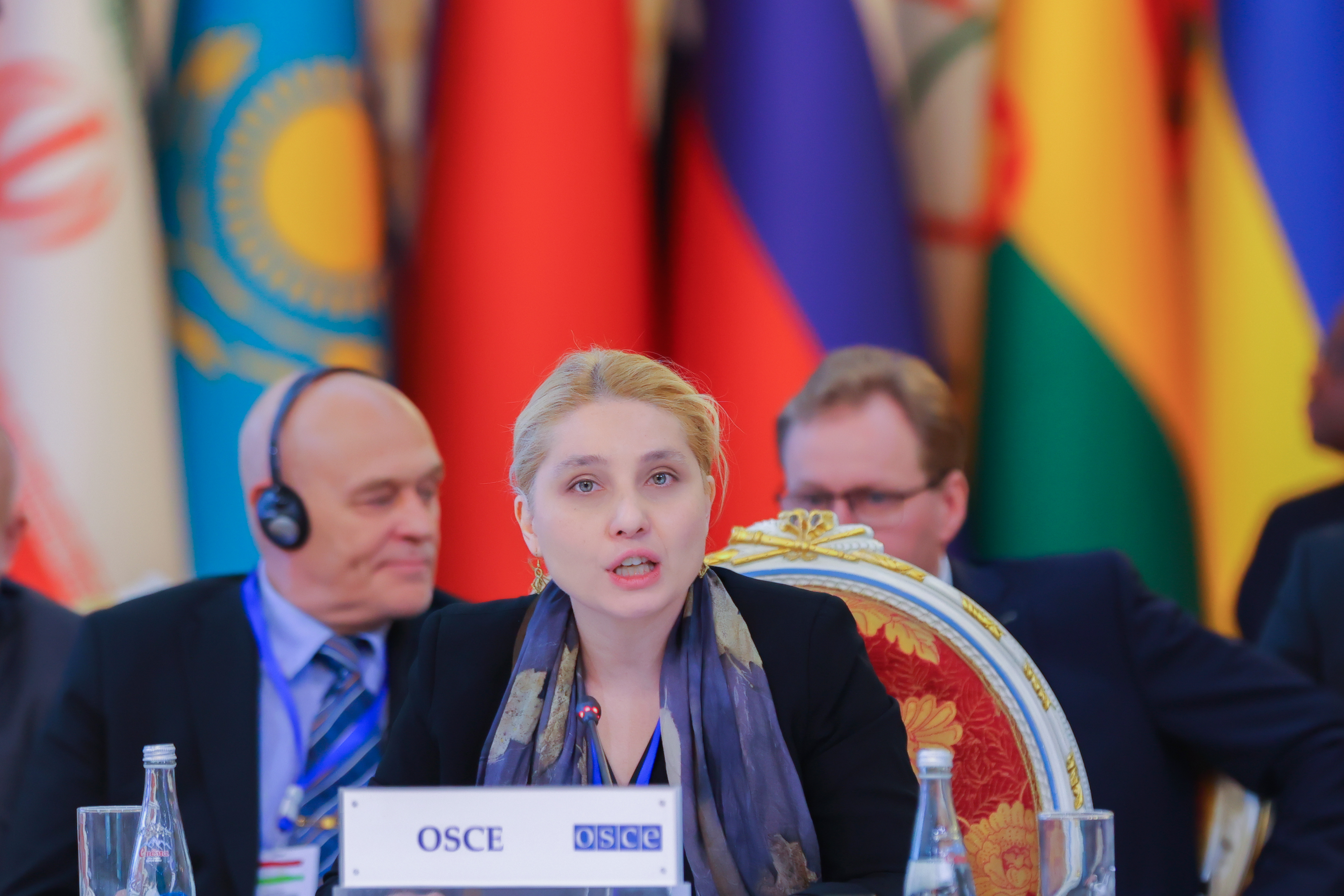 Acting Head of the OSCE Programme Office in Dushanbe Tea Jaliashvili while addressing participants of the conference, Dushanbe, 19 October 2022.