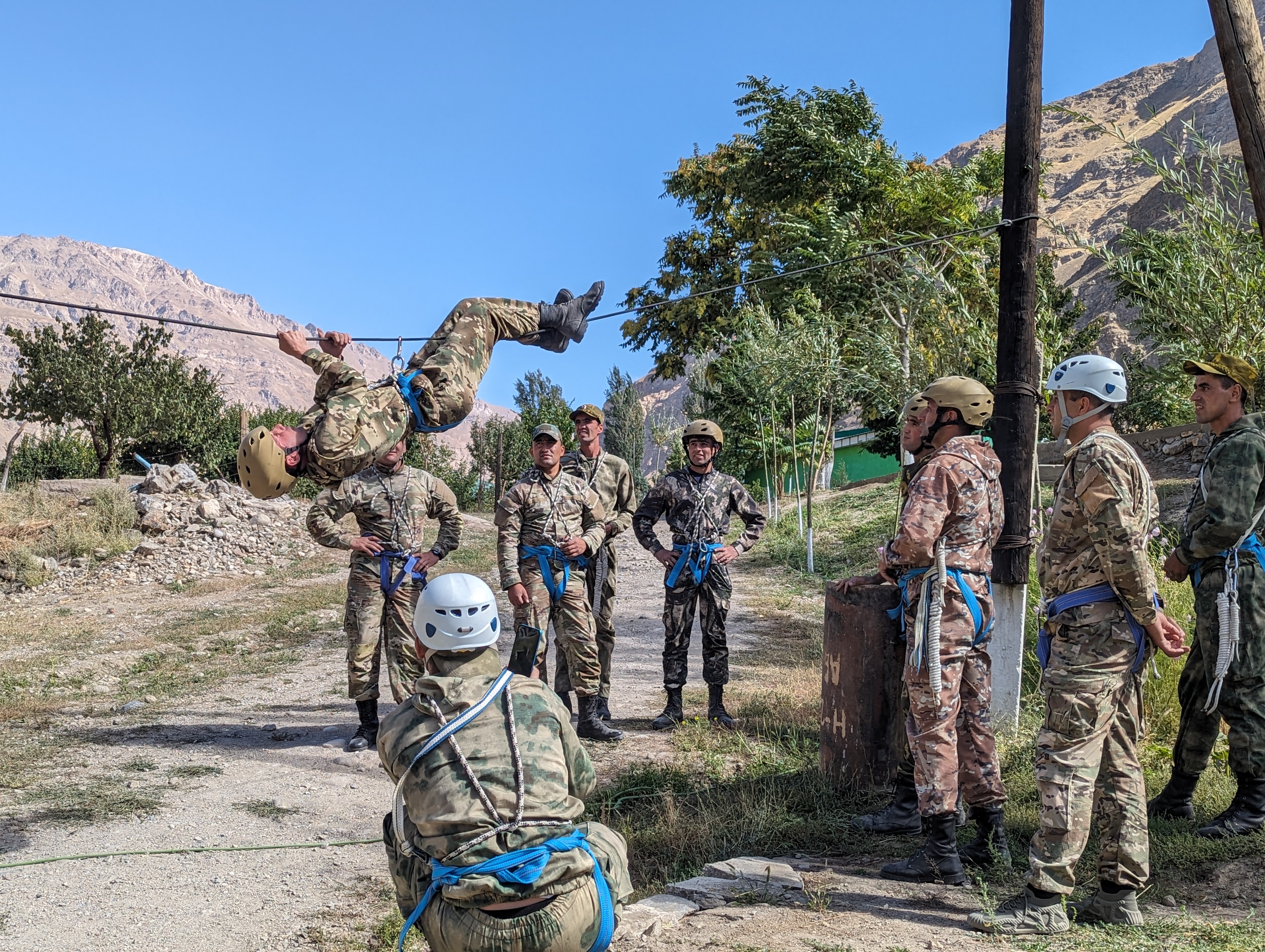 Officers from Tajikistan’s Border Troops Special Units participate in a practical session during a one-month training course titled “Sustaining Field Operational Capacities”, Khorog, Tajikistan, 8 September 2023.