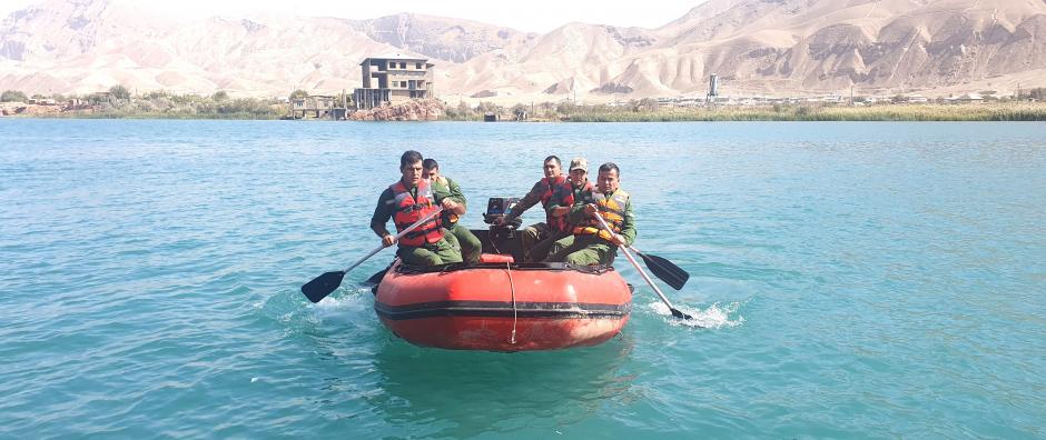 Tajik rescuers from the Committee of Emergency Situations and Civil Defence at a two-week training course on “Surface Water Rescue Operation” in Levakand, Khatlon region, 9 October 2023.