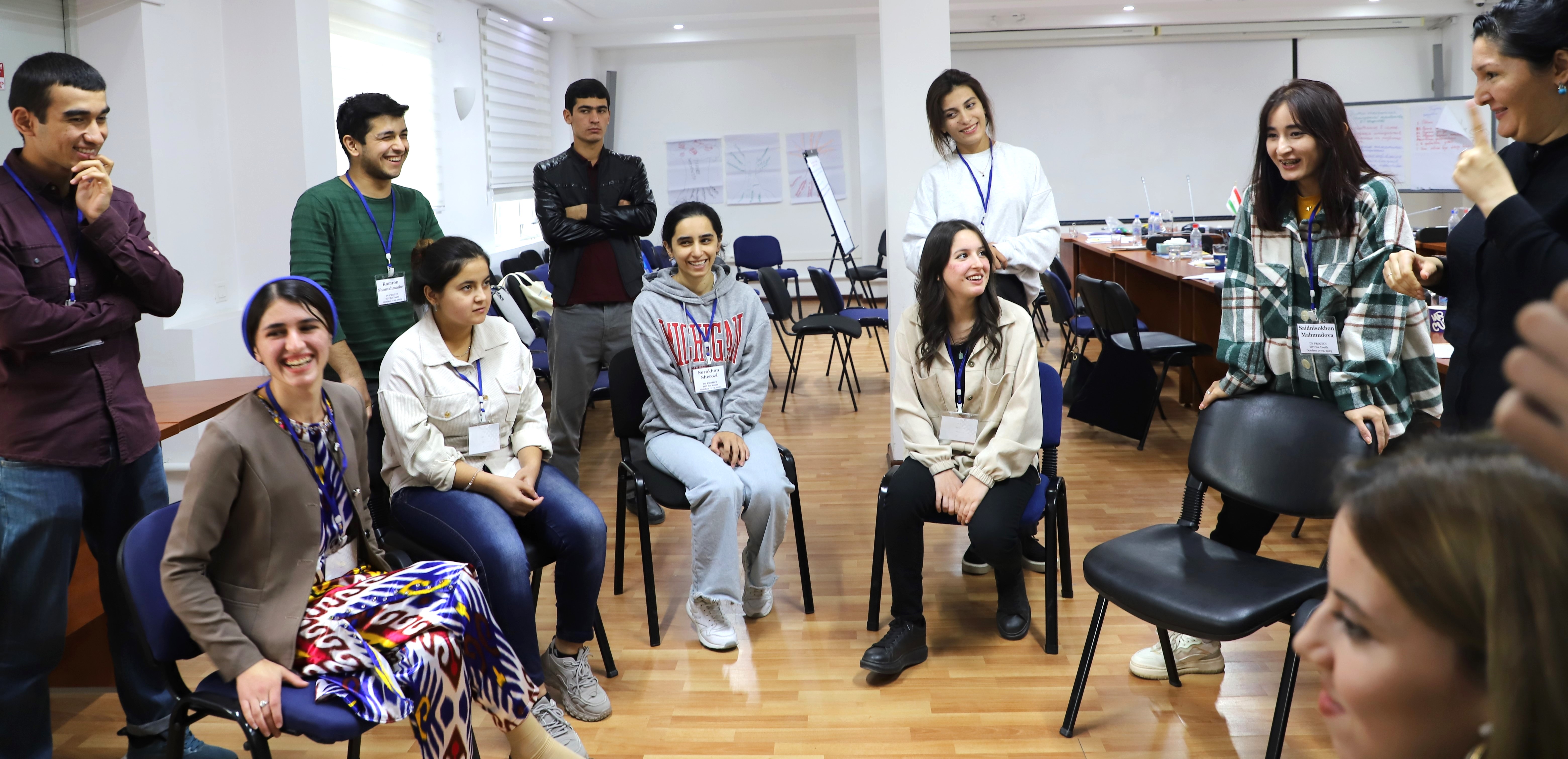 Young people from Dushanbe and the regions of Tajikistan attending a three-day training of trainers course on domestic violence issues, Dushanbe, 18 October 2023.